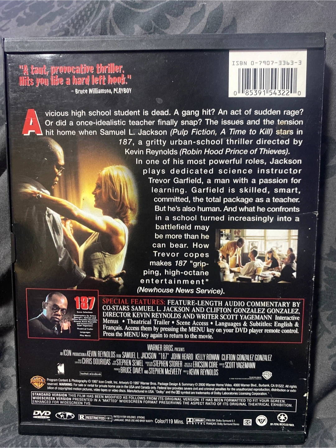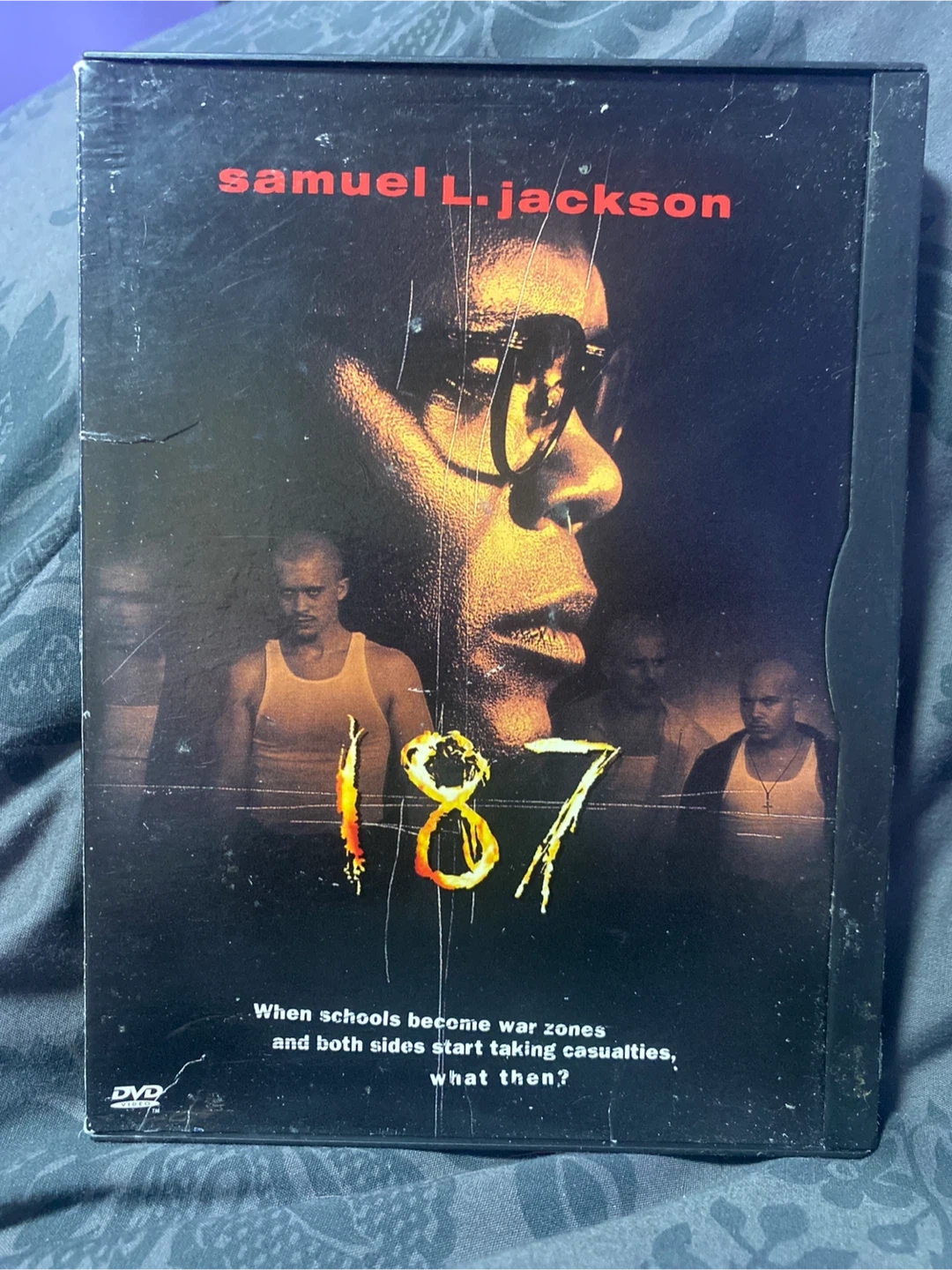 Selling a DVD of the movie '187' starring Samuel L. Jackson. It's a gritty urban-school thriller directed by Kevin Reynolds.