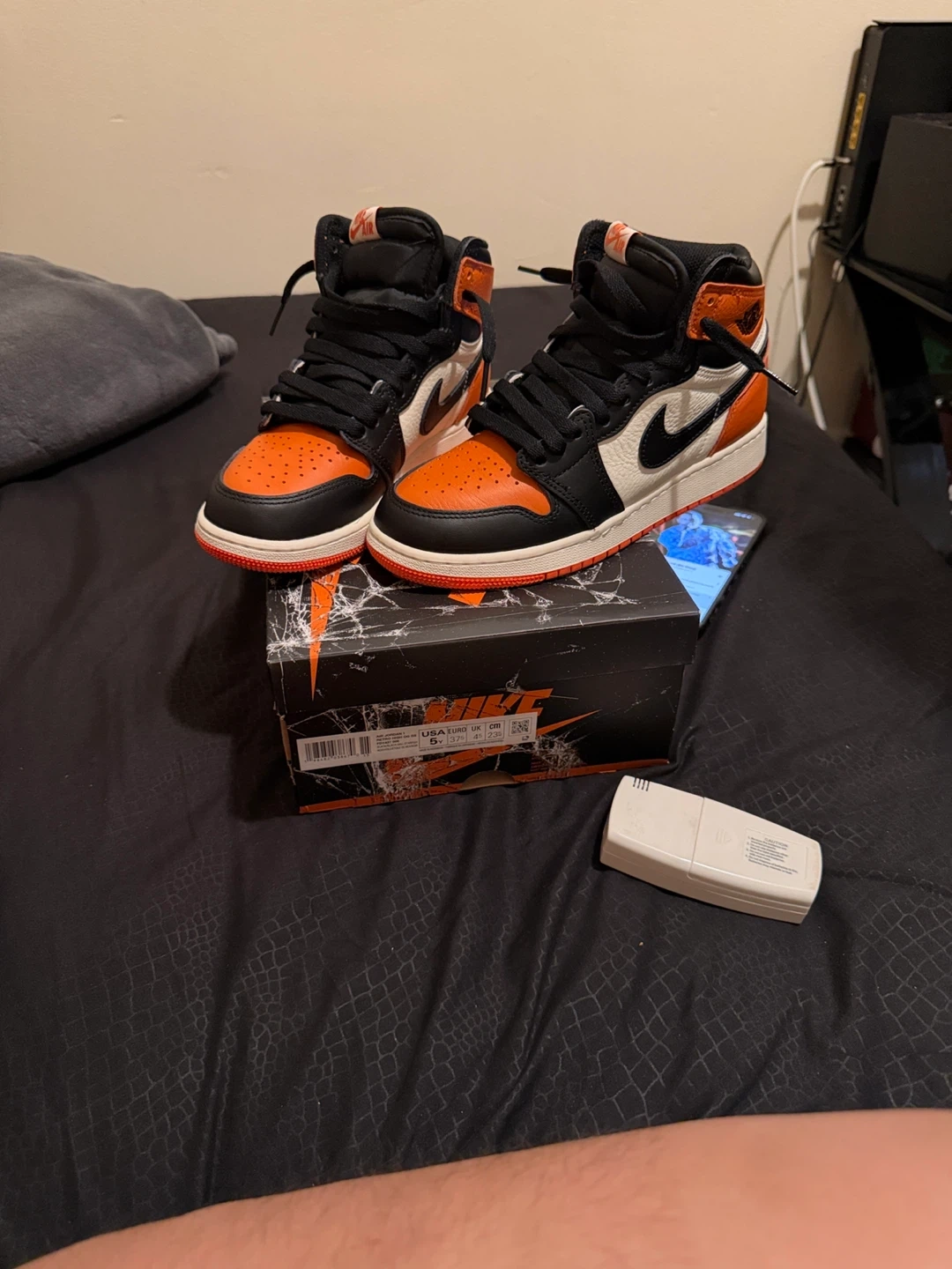 Selling a pair of Nike Air Jordan 1 Retro High OG Shattered Backboard in size 5Y. These are in great condition and come with the original box!