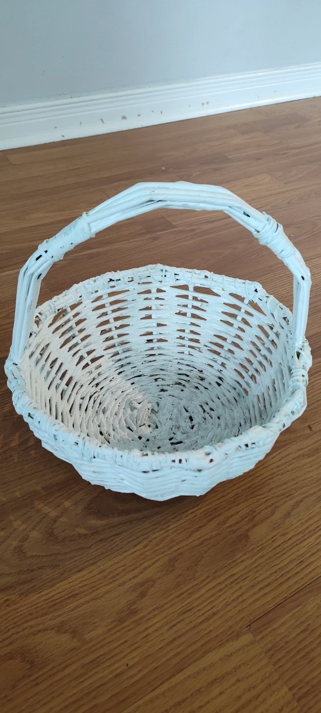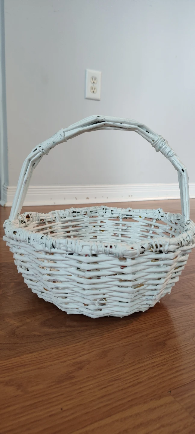 Selling a white wicker basket. It's perfect for storage or decoration!