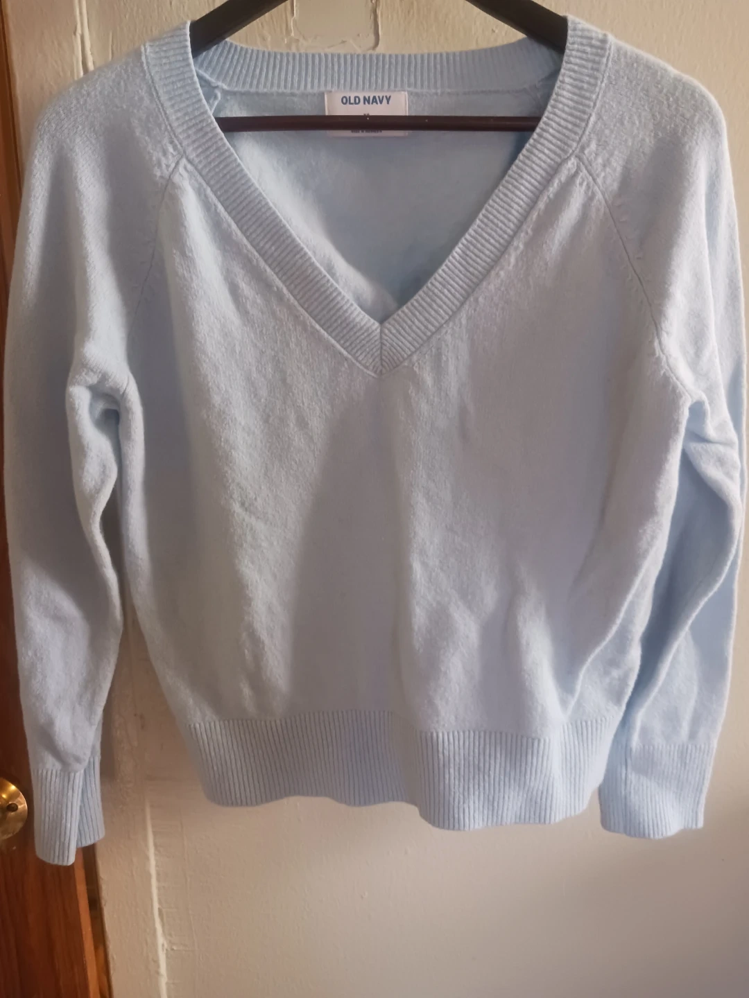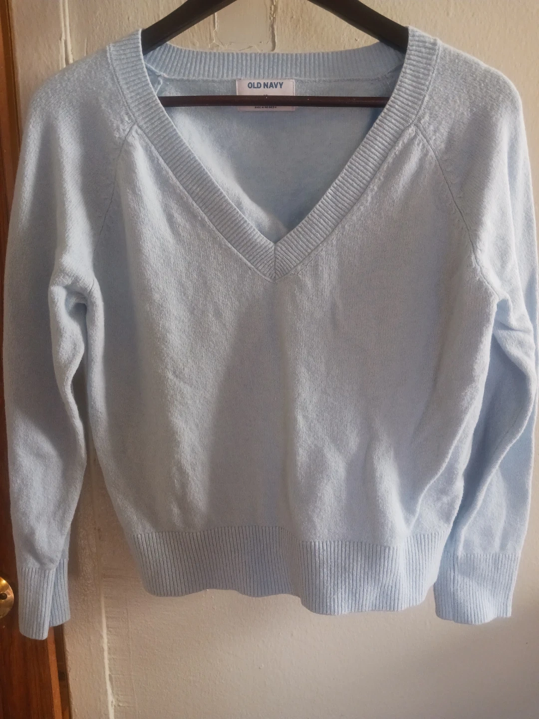 Here's a light blue V-neck sweater from Old Navy! It's in great condition and ready for a new home. Perfect for layering or wearing on its own