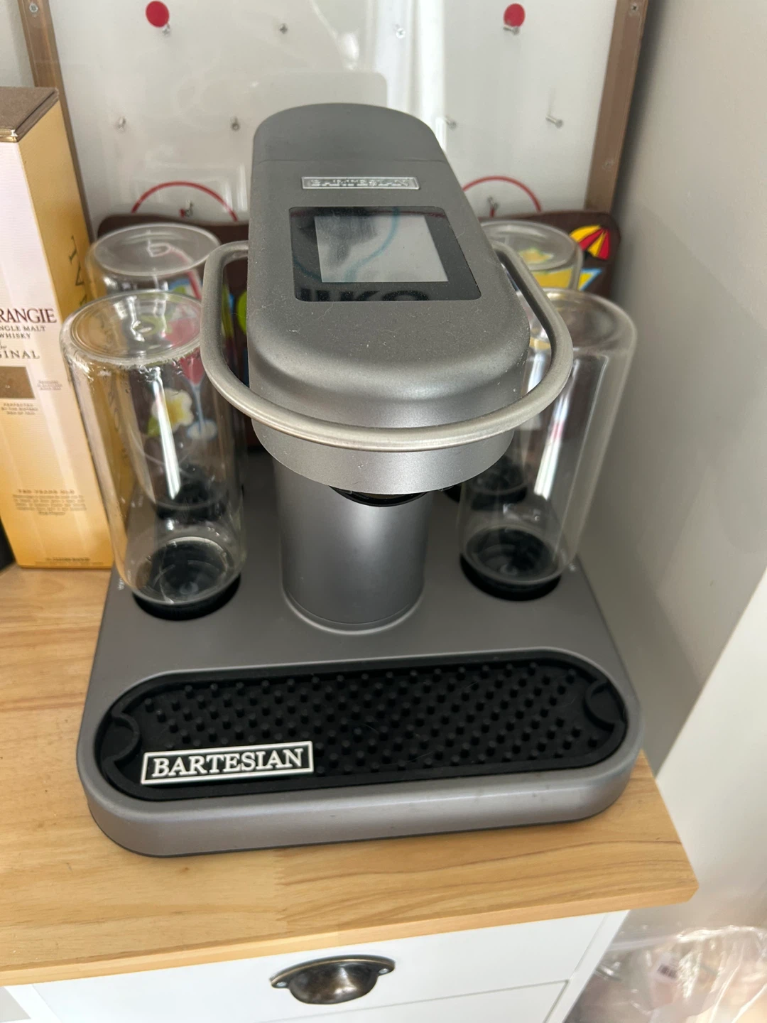 I'm selling a Bartesian cocktail maker. It's in great shape and ready to make some delicious drinks! It comes with the glasses and a variety of cocktail capsules. Used only for one season, and would love to see it go to a good home!