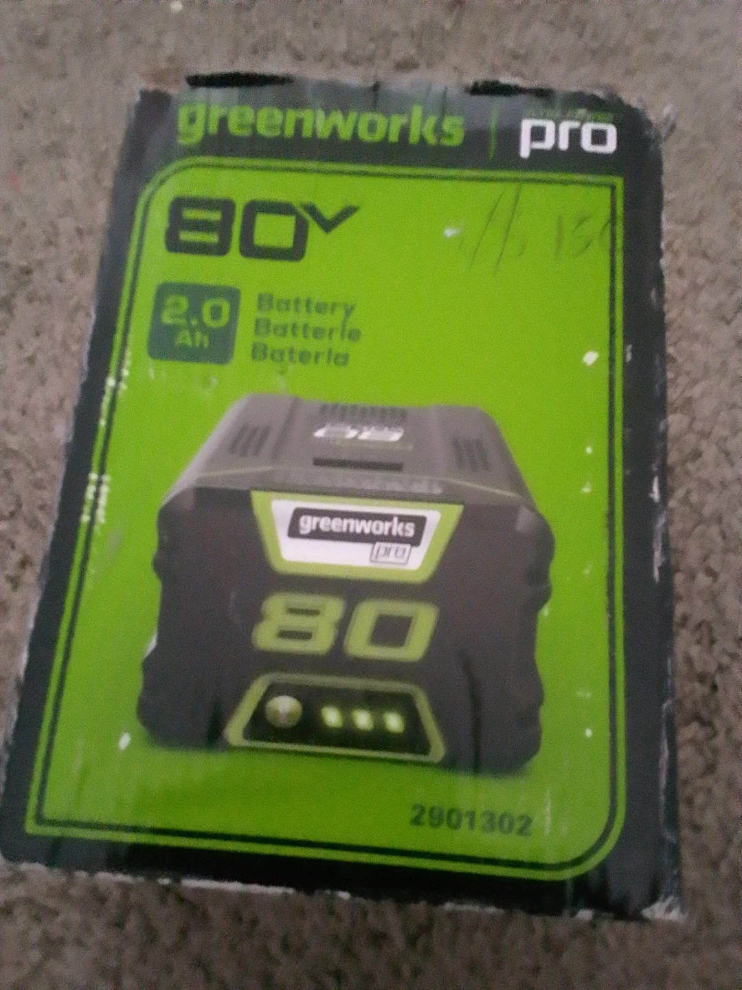 Selling a Greenworks Pro 80V 2.0 Ah Battery. This battery charges in just 30 minutes. It's in great condition and ready to power your tools