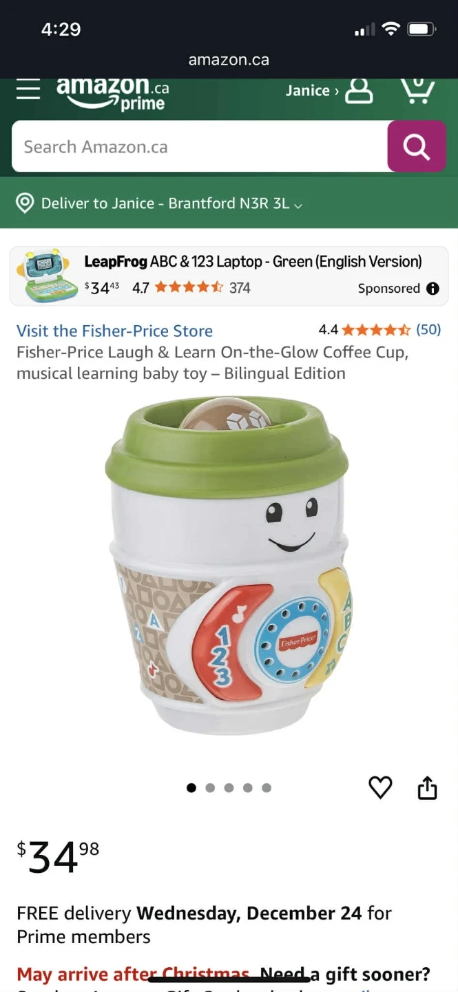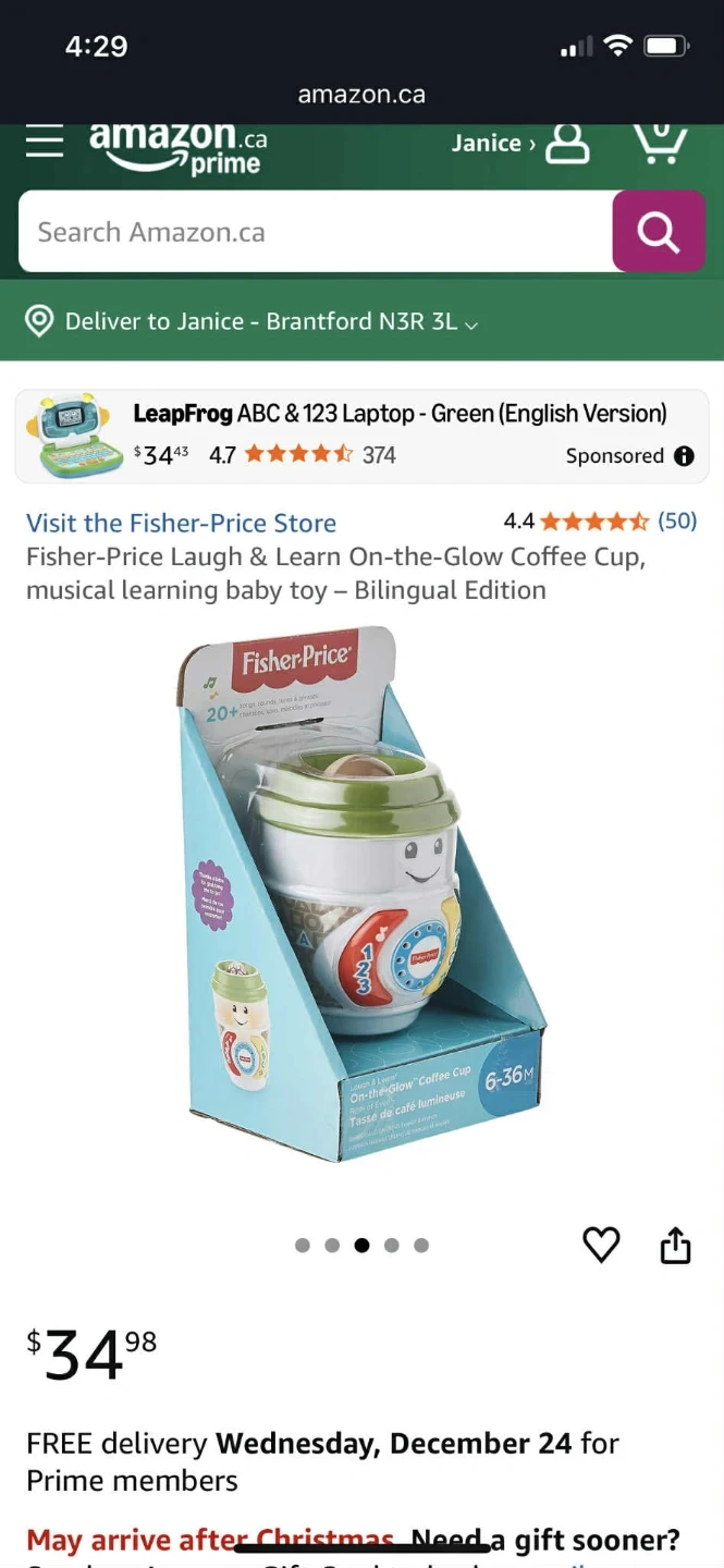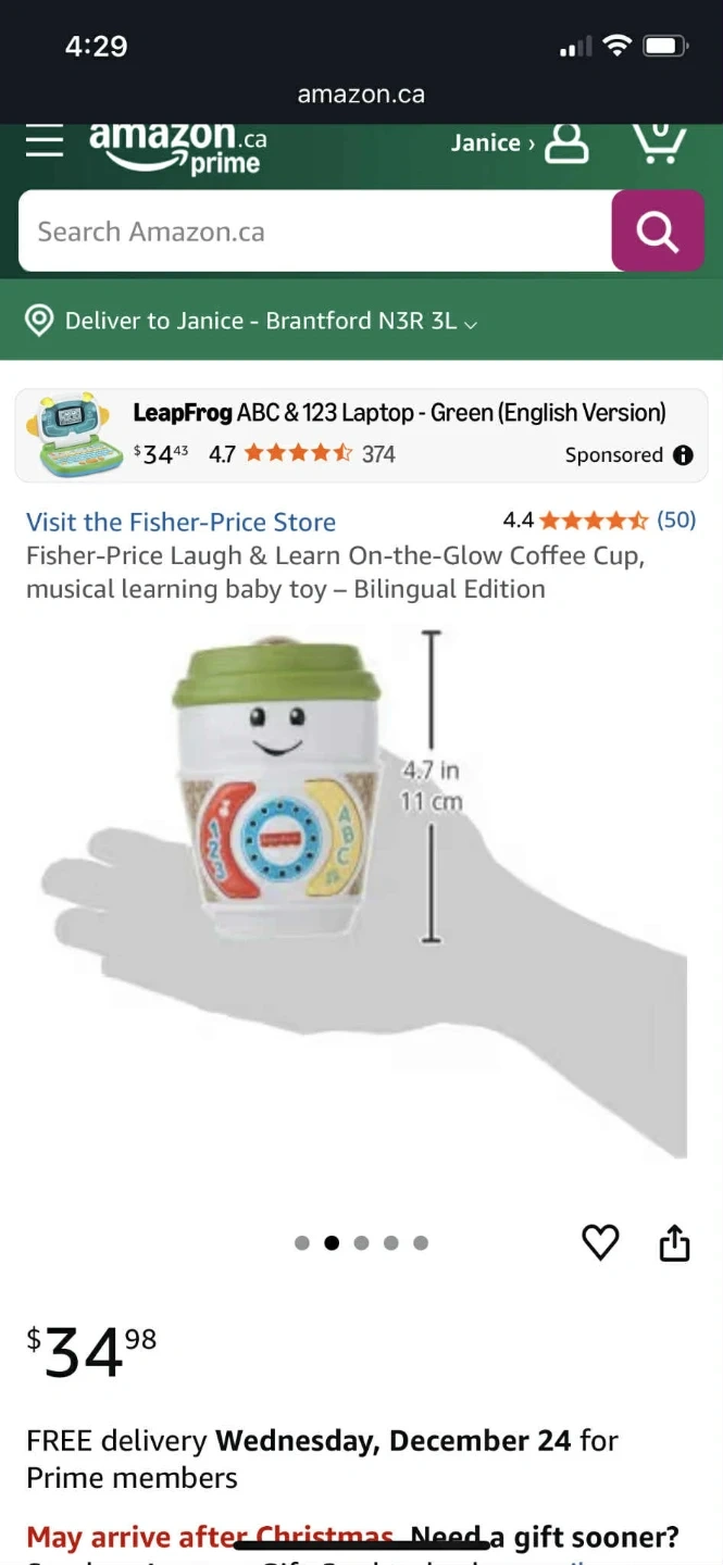 This Fisher-Price Laugh & Learn On-the-Glow Coffee Cup is a bilingual musical learning baby toy! It's in great condition and comes in its original box. Retails for $34.98.