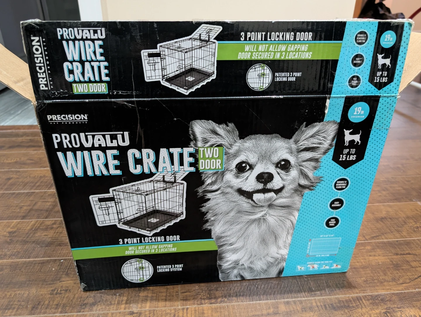 Selling a Precision ProValu wire crate with two doors! It's in great condition and comes with the original box.
