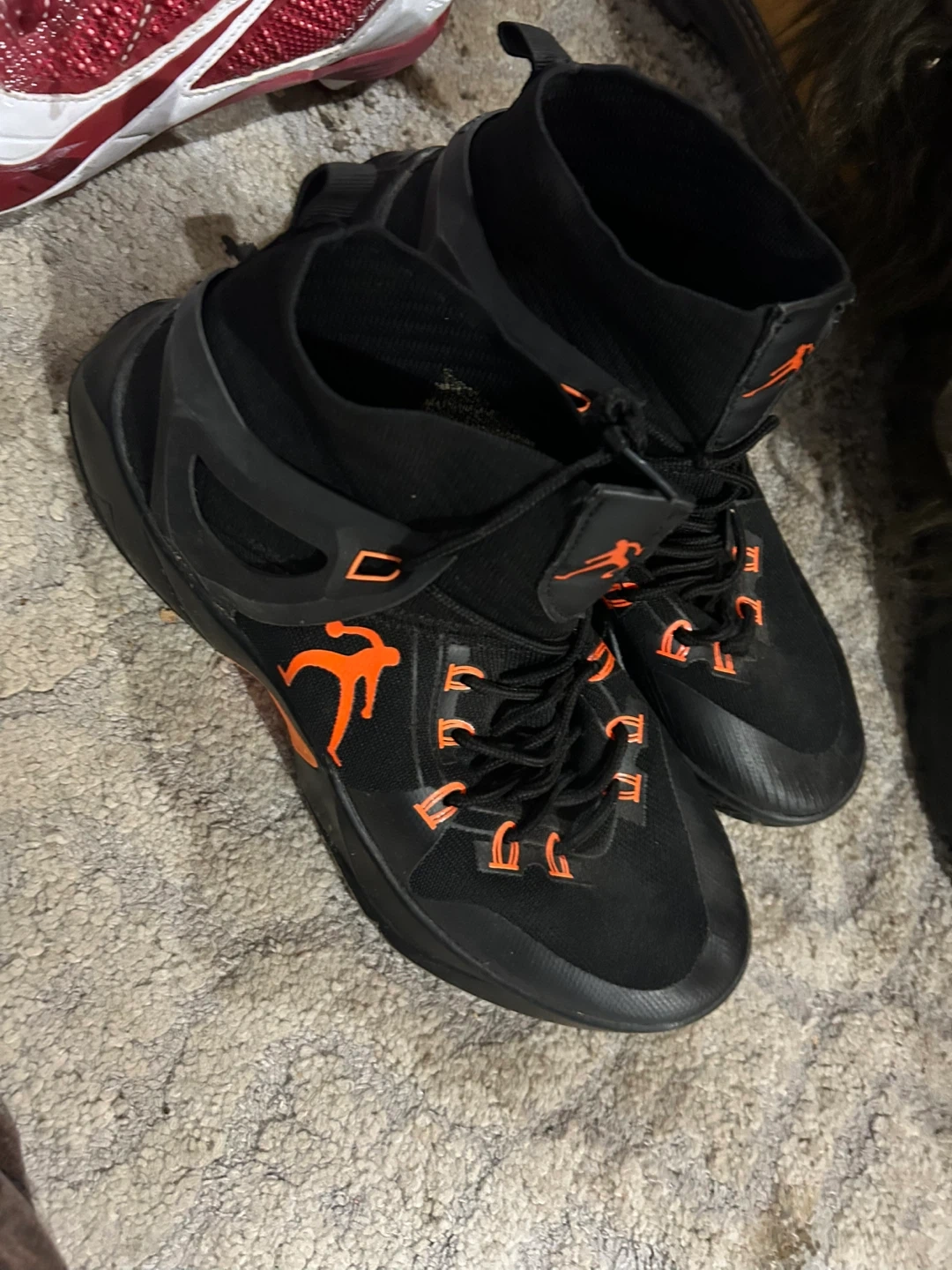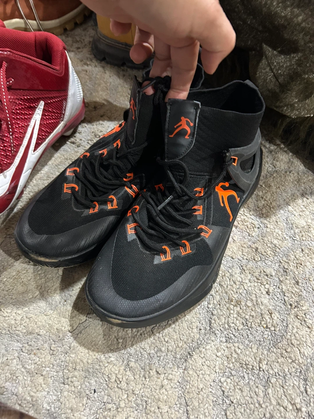 Selling a pair of AND1 Attack 2.0 basketball shoes in black and orange. They're in good condition and ready for the court! These shoes are perfect for anyone looking for style and performance.
