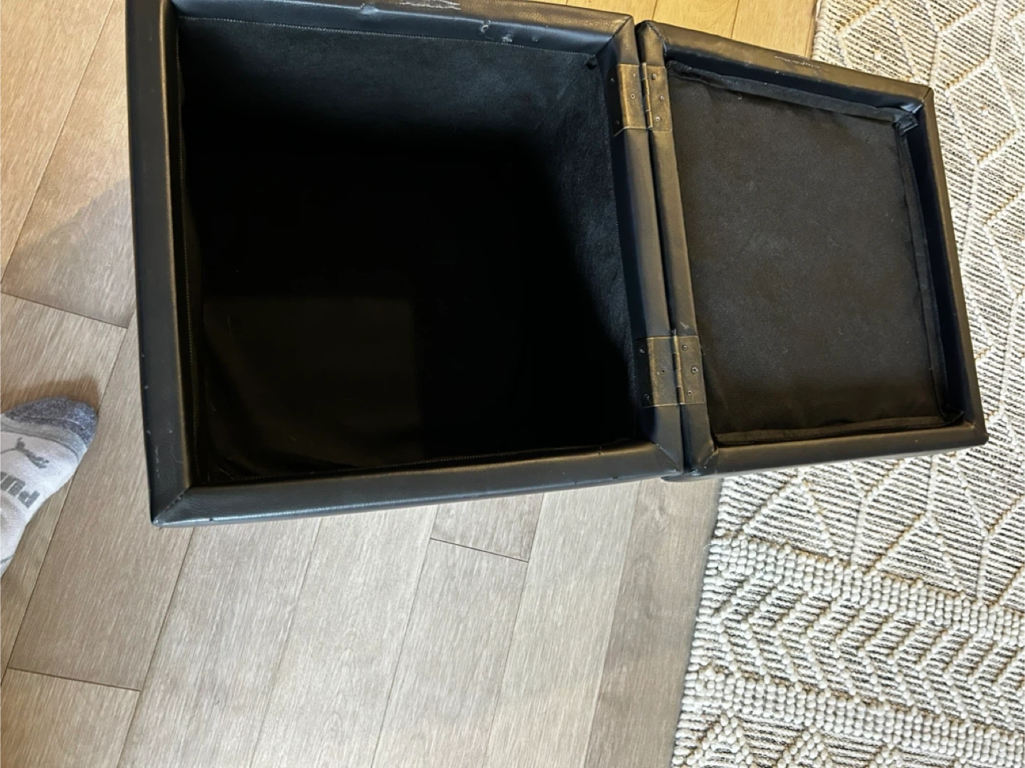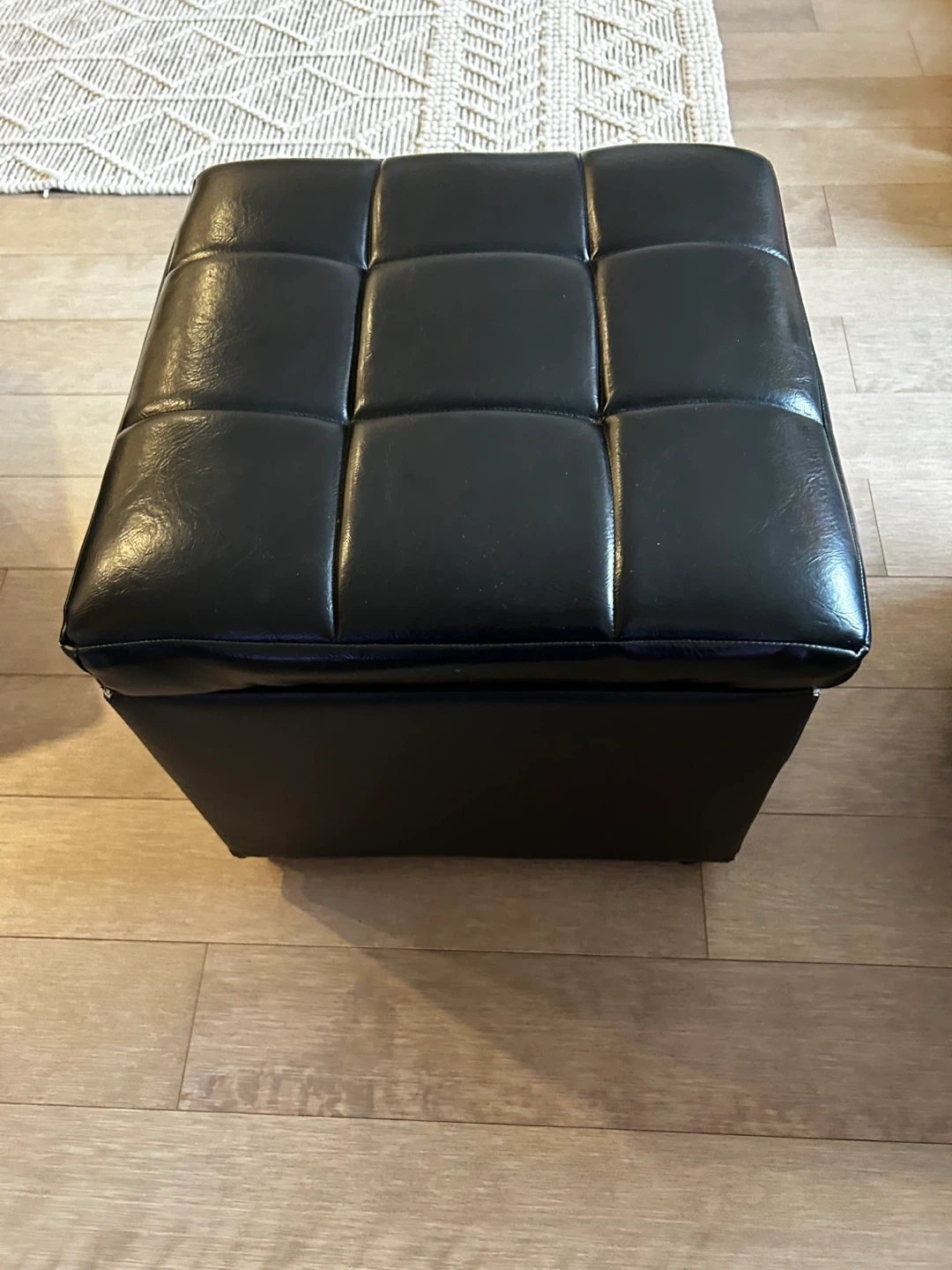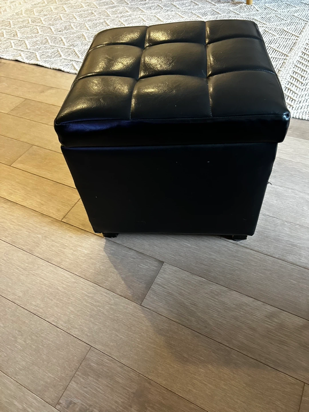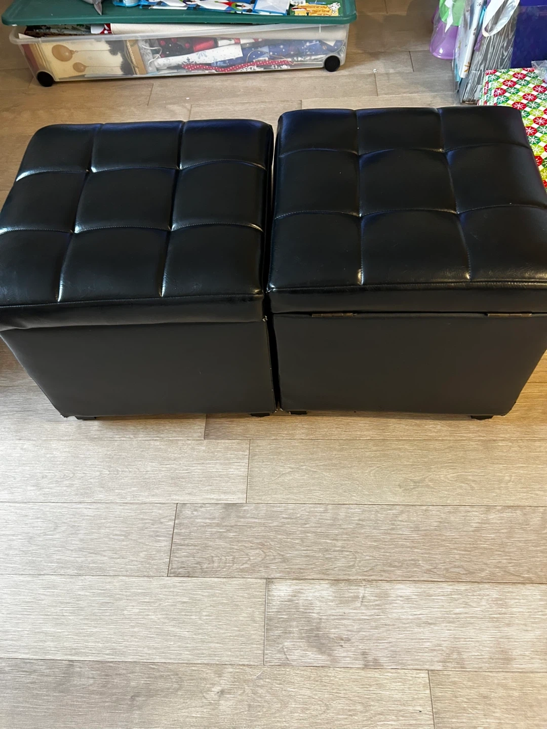 FREE - a set of two black storage ottomans! They're in ok condition and offer a stylish way to keep your space tidy. Perfect for extra seating and storage in any room. Pick up area, Bayview and Shepherd.