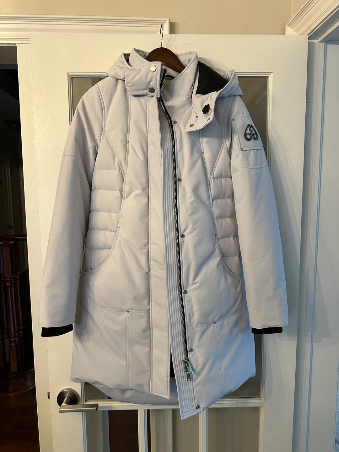 Selling a Moose Knuckles Icon in Cloud coat in light grey. It's brand new condition and ready for the colder weather! Tags cut and included. Womens medium
