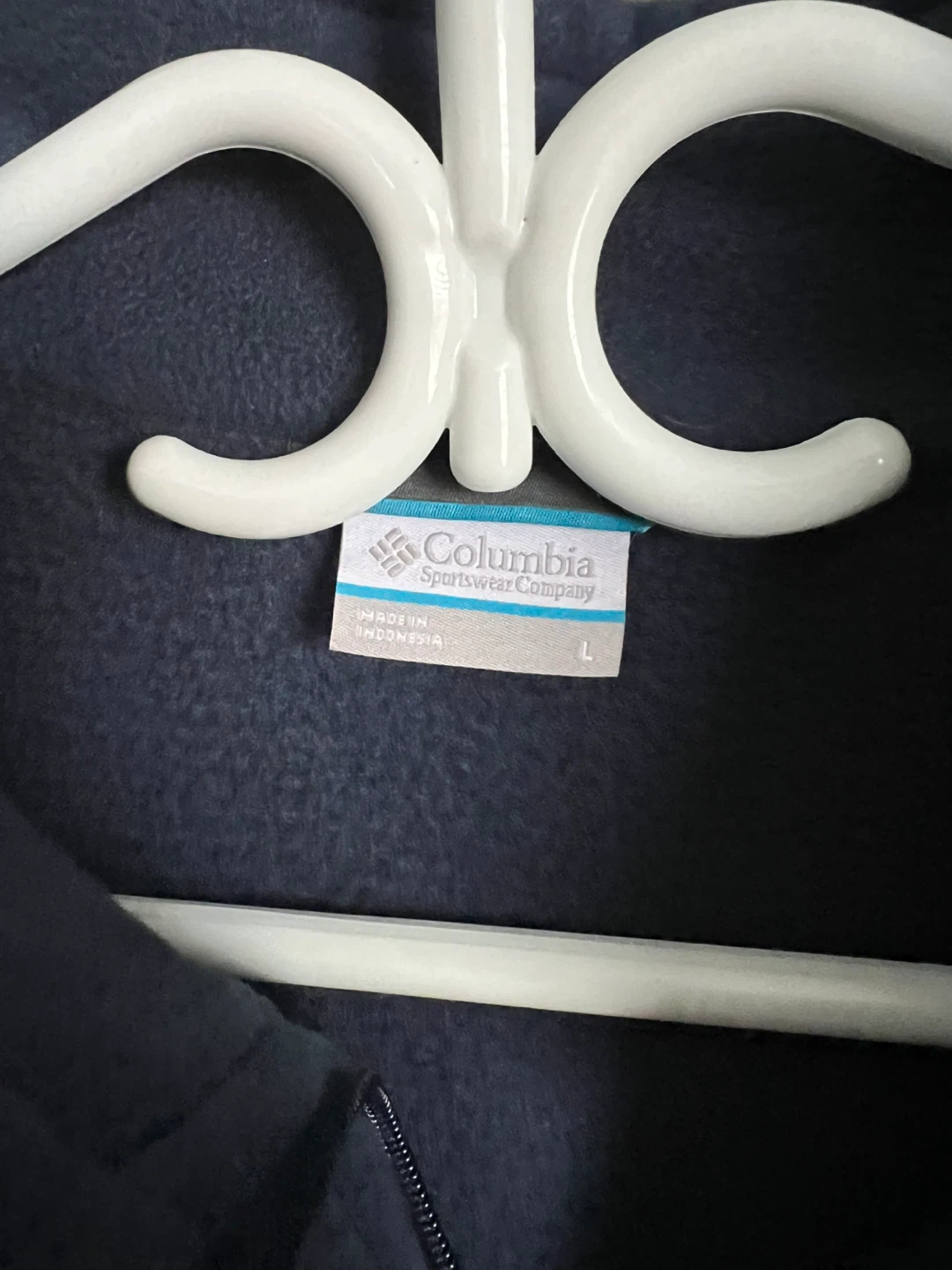 Cozy Columbia fleece jacket in size L! It's a nice navy colour and in great condition. Perfect for layering or wearing on its own during cooler days