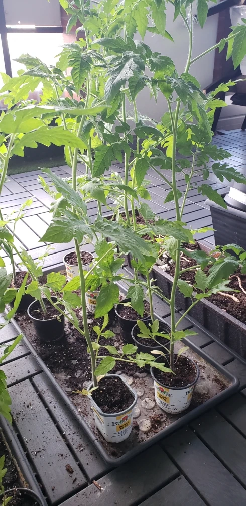 Healthy and organic tomato plants. They are big now, and have the flower buds!