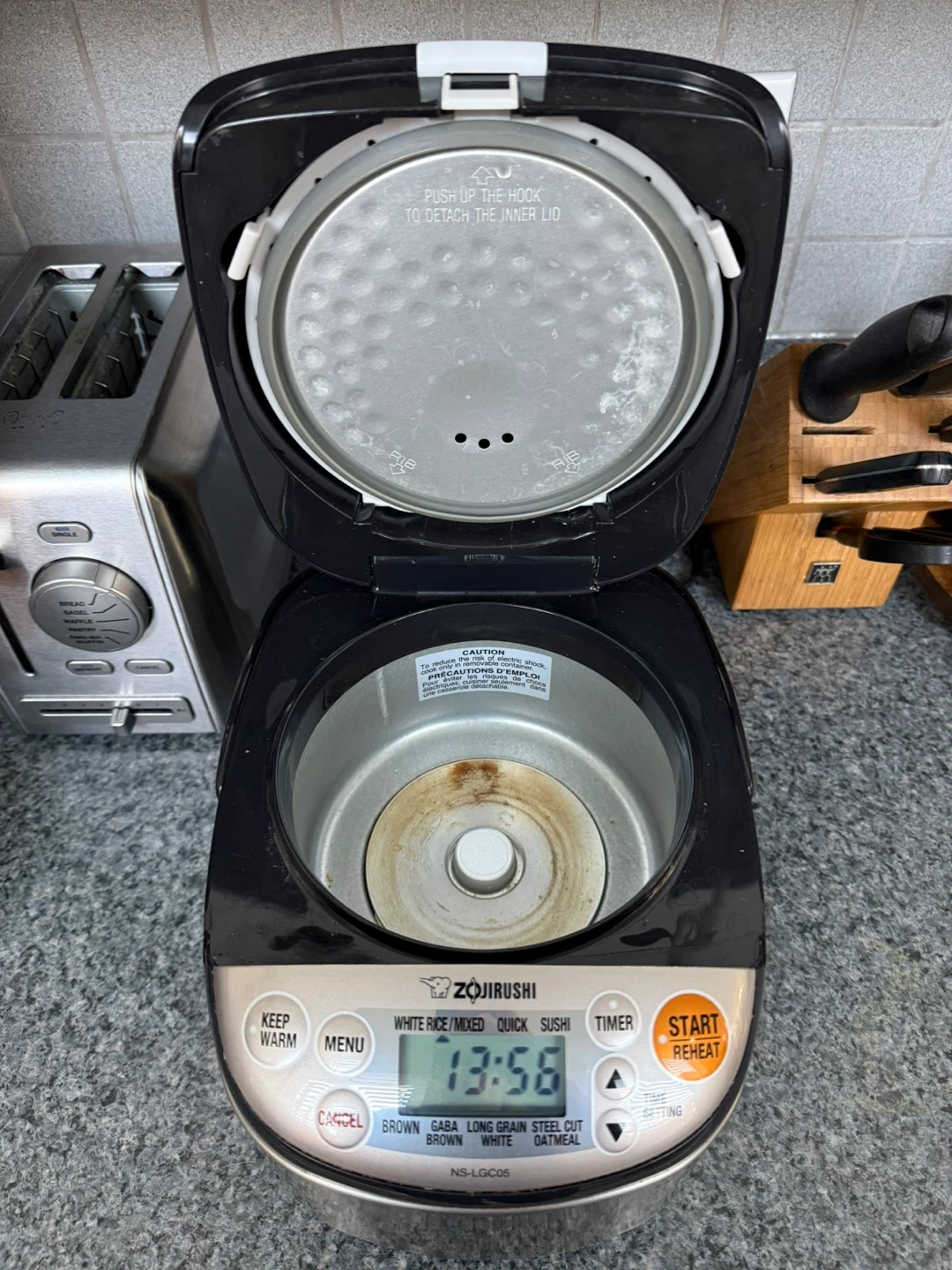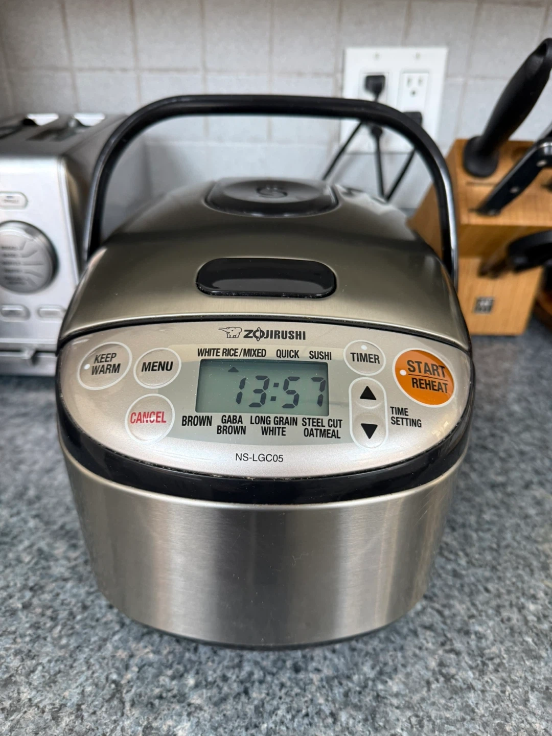 Selling a Zojirushi NS-LGC05 rice cooker. It's in good condition and ready to cook your favorite rice dishes. It features settings for white rice, brown rice, mixed rice, sushi, and other granes such as quinoa and steel cut oats