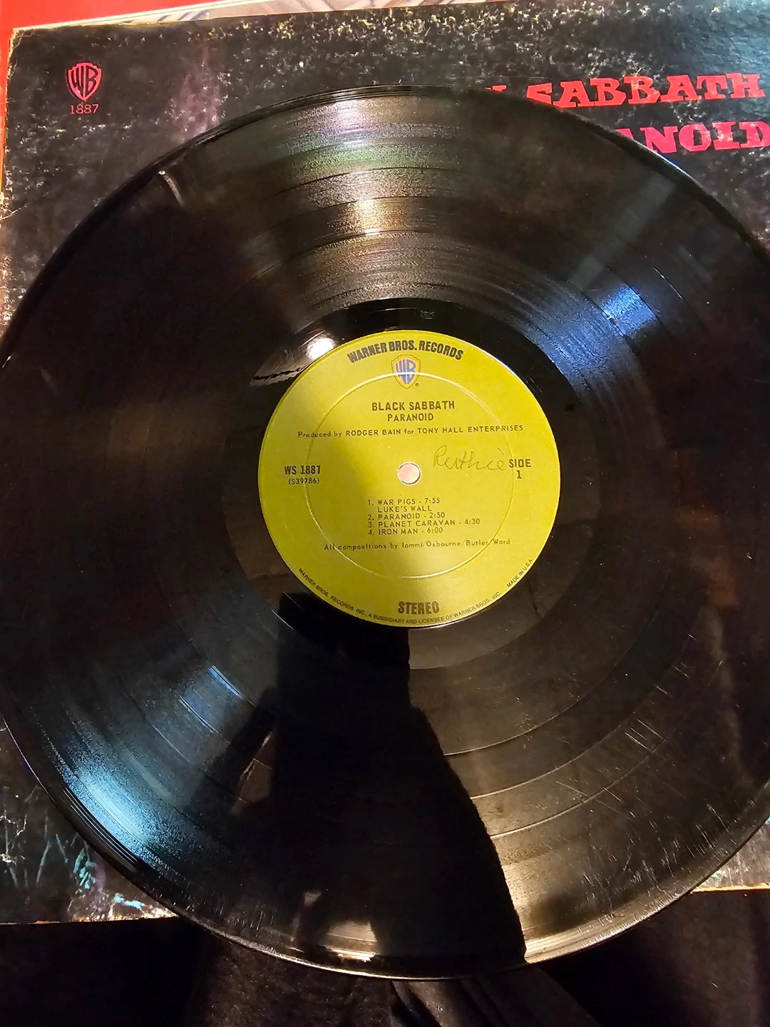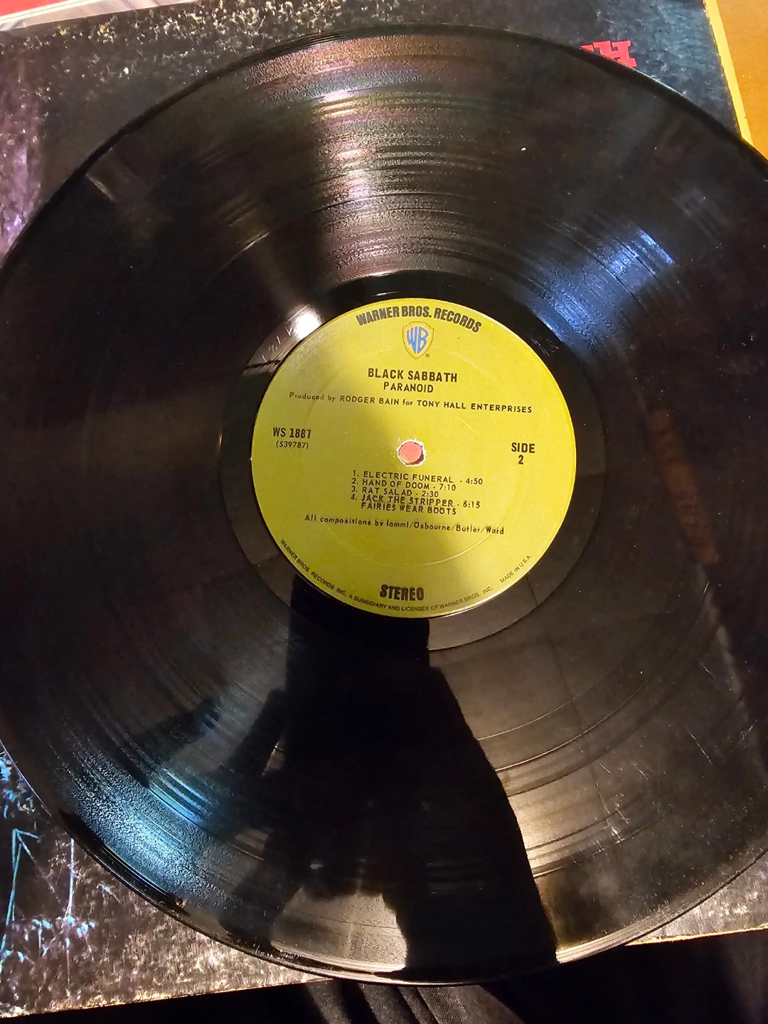 Selling a Black Sabbath - Paranoid vinyl record. This is a Warner Bros. Records release. It's the WS 1887 version. Side 2 includes the tracks Electric Funeral, Hand of Doom, Rat Salad, Jack the Stripper, and Fairies Wear Boots. All compositions by Iommi, Osbourne, Butler, and Ward