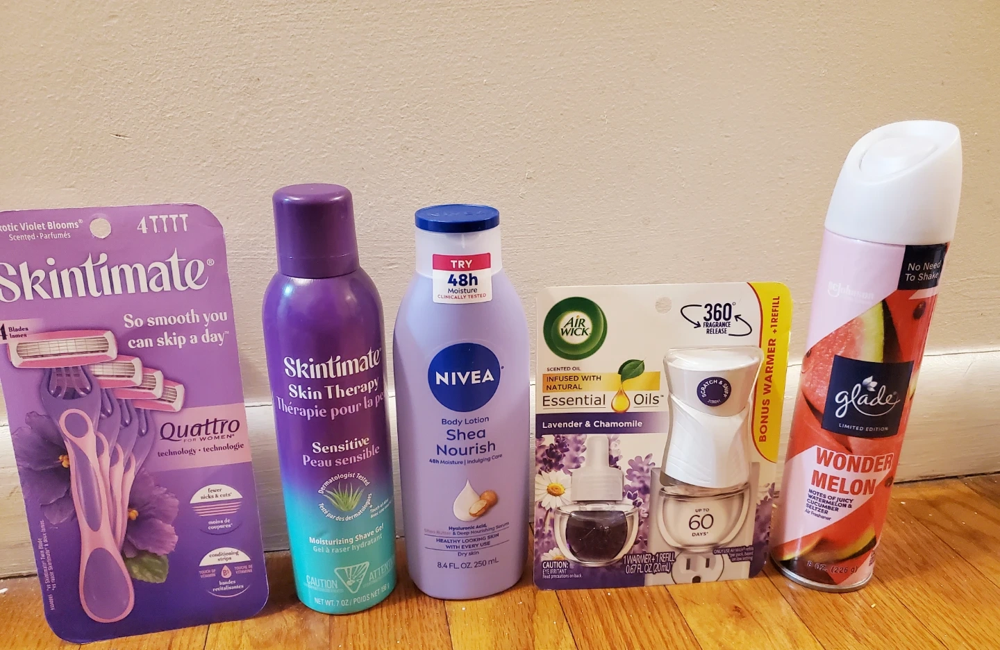 Skintimate Razor, Shave Gel, Nivea Lotion, Air Wick, Glade