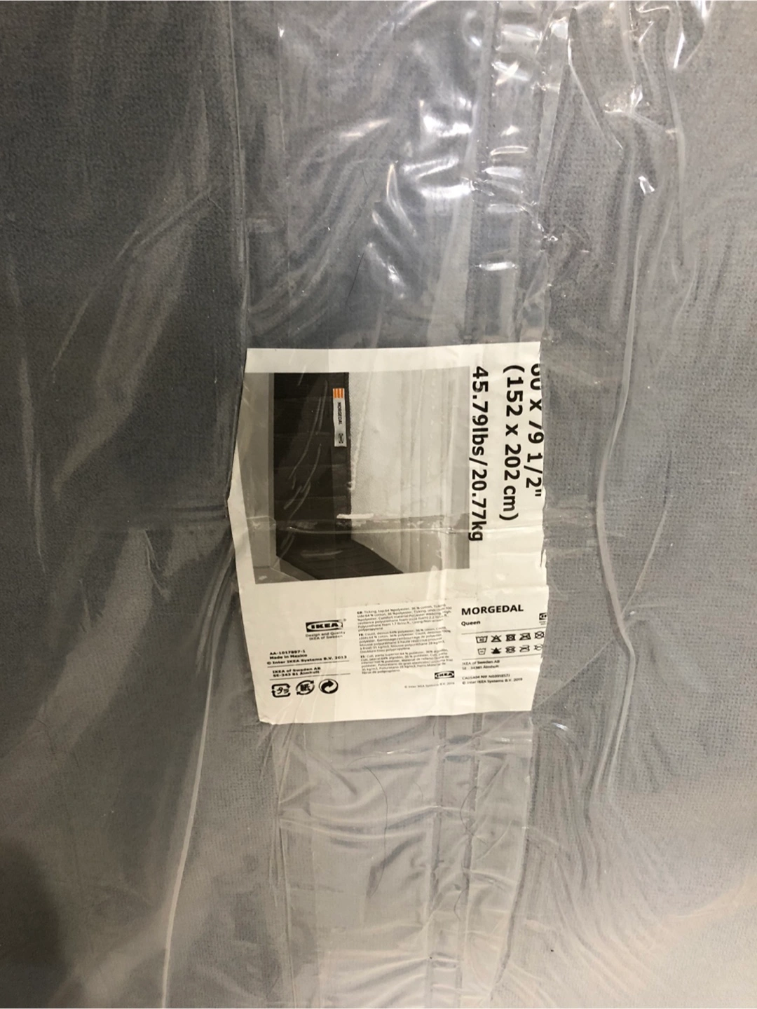Almost brand new IKEA MORGEDAL foam mattress (Queen Size). Original plastic wrap never removed. Only unrolled and briefly laid on a few times with a mattress cover. Very clean and well maintained.
