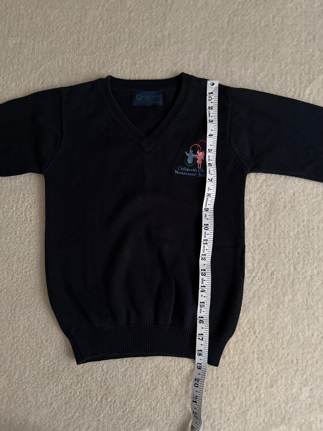 I have a Children's Circle Montessori School sweater available. It's a size Y3XS and navy blue. It's in great condition!