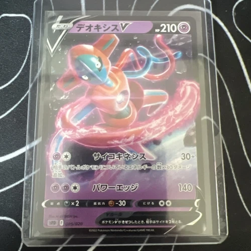 Elevate your Pokémon TCG collection with the Deoxys V card from the Deoxys VSTAR & VMAX High-Class Deck. This Japanese edition card, numbered 005/020, features the iconic Holo finish that glistens in the light, catching the eye of collectors and players alike. Manufactured by Nintendo, this card is a standout piece with its Holo Rare rarity, making it a valuable addition for those looking to enhance their gameplay or preserve a piece of Pokémon history. Whether for play or display, Deoxys V is a must-have for enthusiasts.