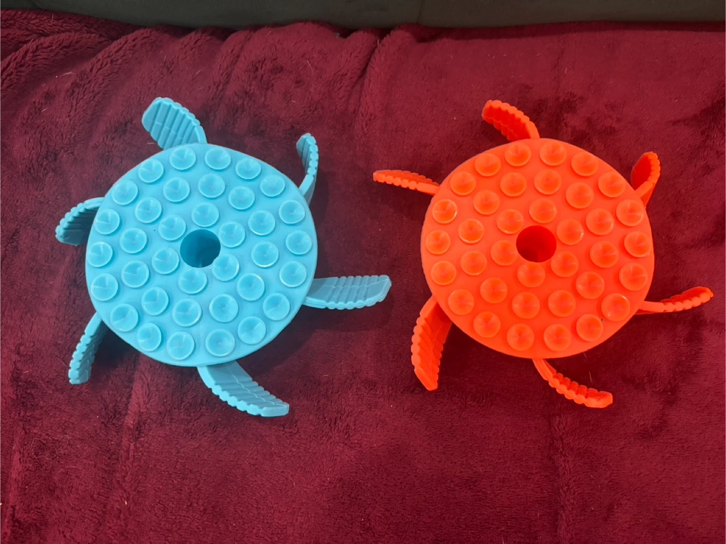 Includes one blue and one orange slow feeder bowl insert. These mats are designed to help for those who have a dog or cat that rush to eat all their food, slowing down the eating process. They feature a textured surface with suction cups on the back for easy attachment to surfaces.