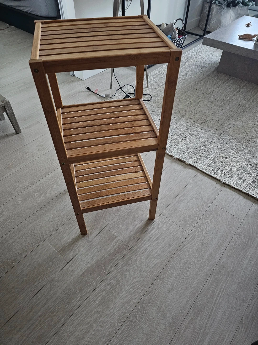 Selling a wooden 3-tier shelf, perfect for adding some extra storage to any room! It's in great shape and ready to use. Great for small spaces