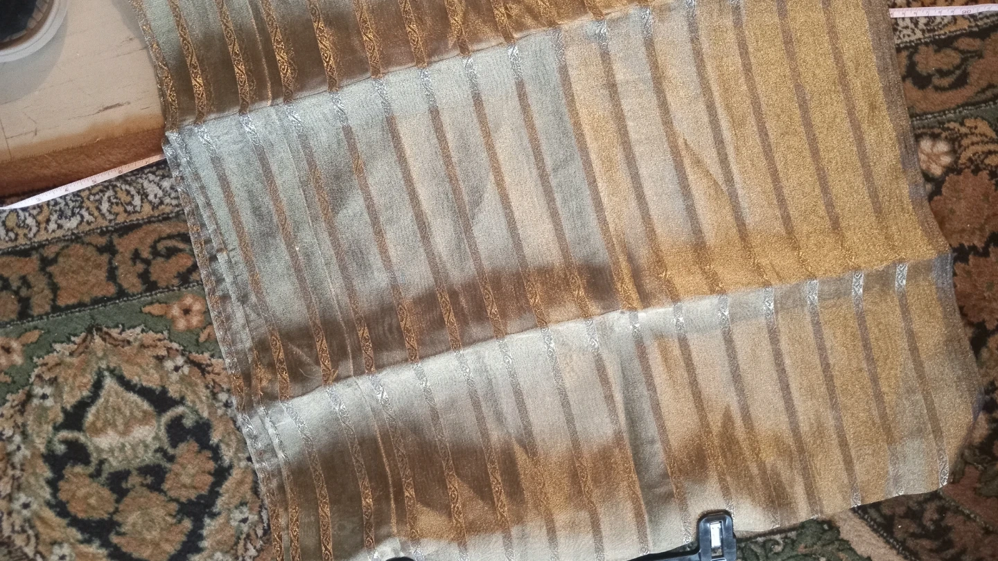 Has gold colour strips with design through it