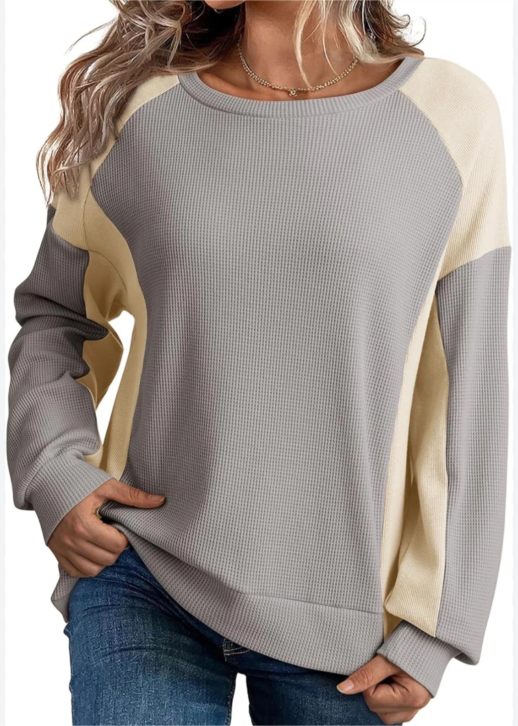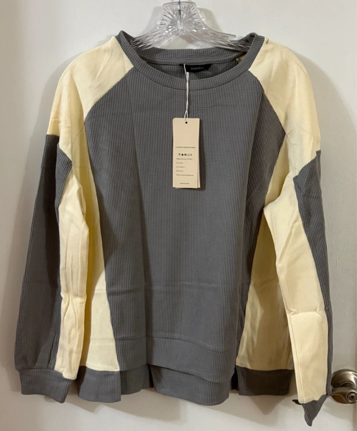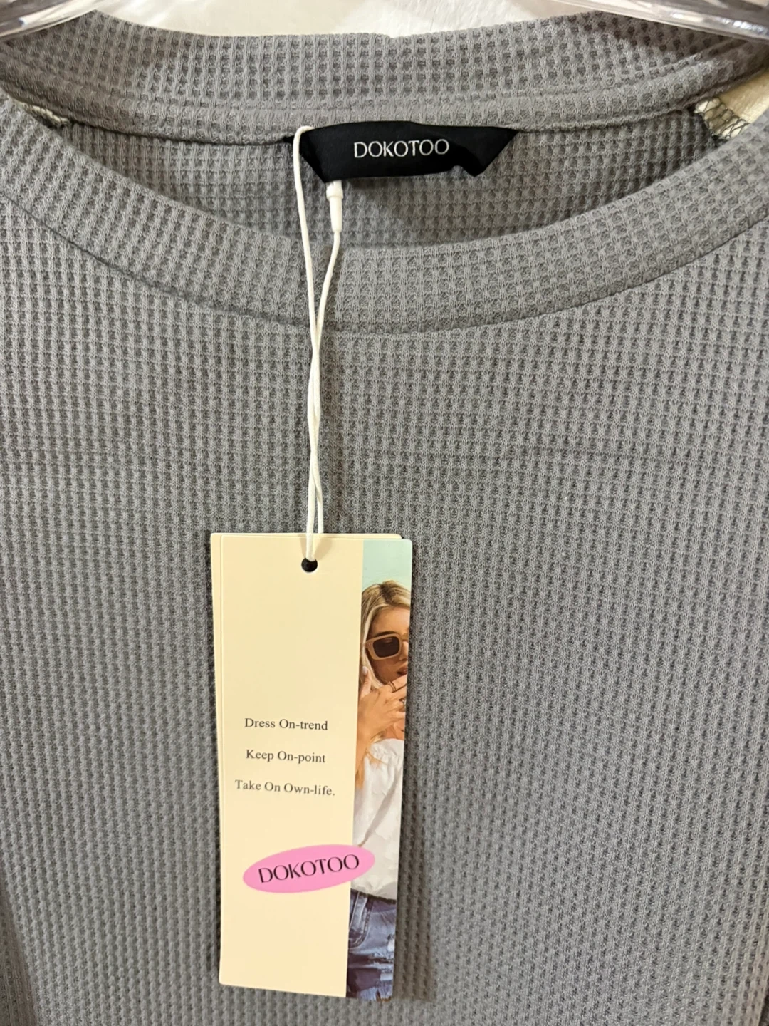 This is a brand new DOKOTOO waffle knit long sleeve top! It's a size small and made of 75% polyester and 25% cotton. The design is really on-trend and would be a great addition to your wardrobe