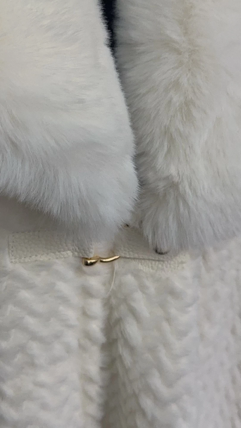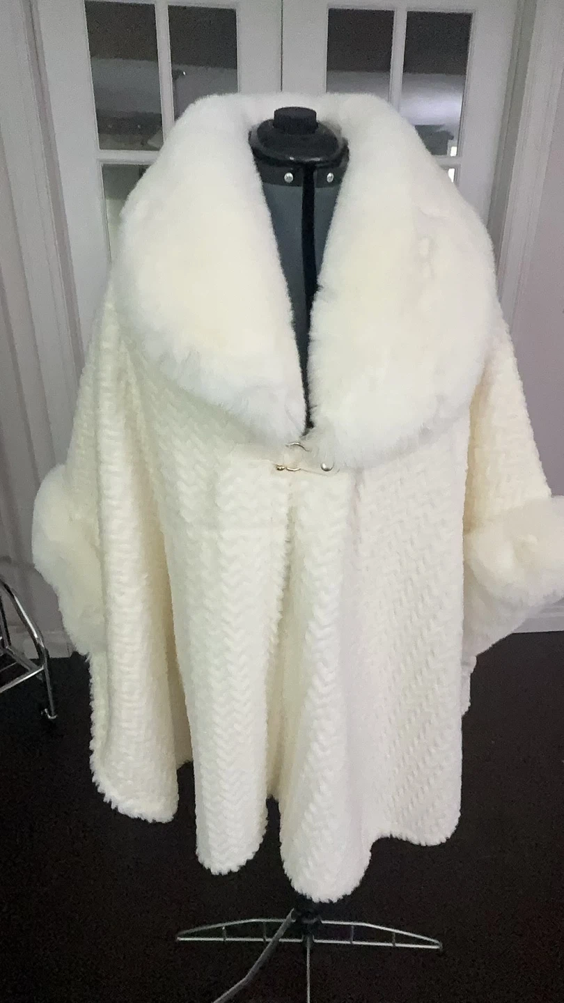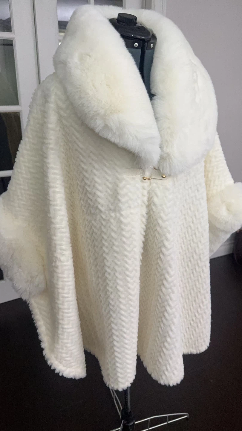 Selling a beautiful white faux fur cape! It's in great condition and would be perfect for adding a touch of elegance to any outfit. The cape features a plush faux fur collar and cuffs, and a simple clasp closure. It's a stylish and cozy addition to your wardrobe!