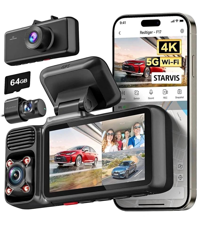 REDTIGER F17 4K 3-Channel Dash Cam | GPS | WiFi