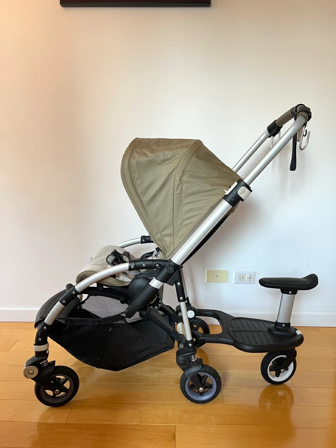 Selling a Bugaboo Bee stroller. It has a wheeled board attachment for an older child to ride along. Great for families with a toddler and an older child. The wheeled board can sell separately.