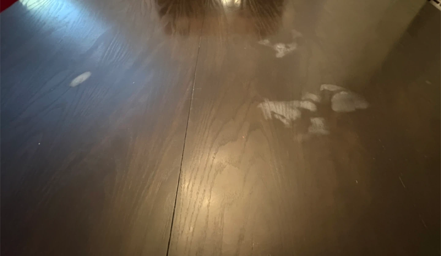 It’s in good shape except for a couple of hazy spots on top from pizza boxes because someone (me) thought cardboard was heatproof. See photos.