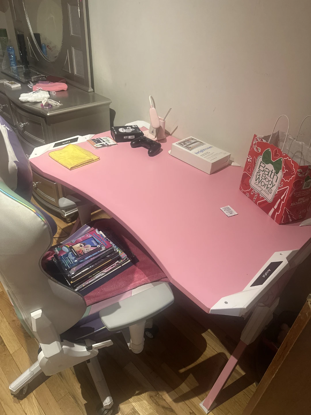 Selling a pink Arozzi Arena gaming desk! It's in great shape and ready for a new setup. Perfect for gamers or anyone needing a stylish workspace (Pick Up Only) make me an offer,,,I also have a blue one for a boy ($100 fo both of them)