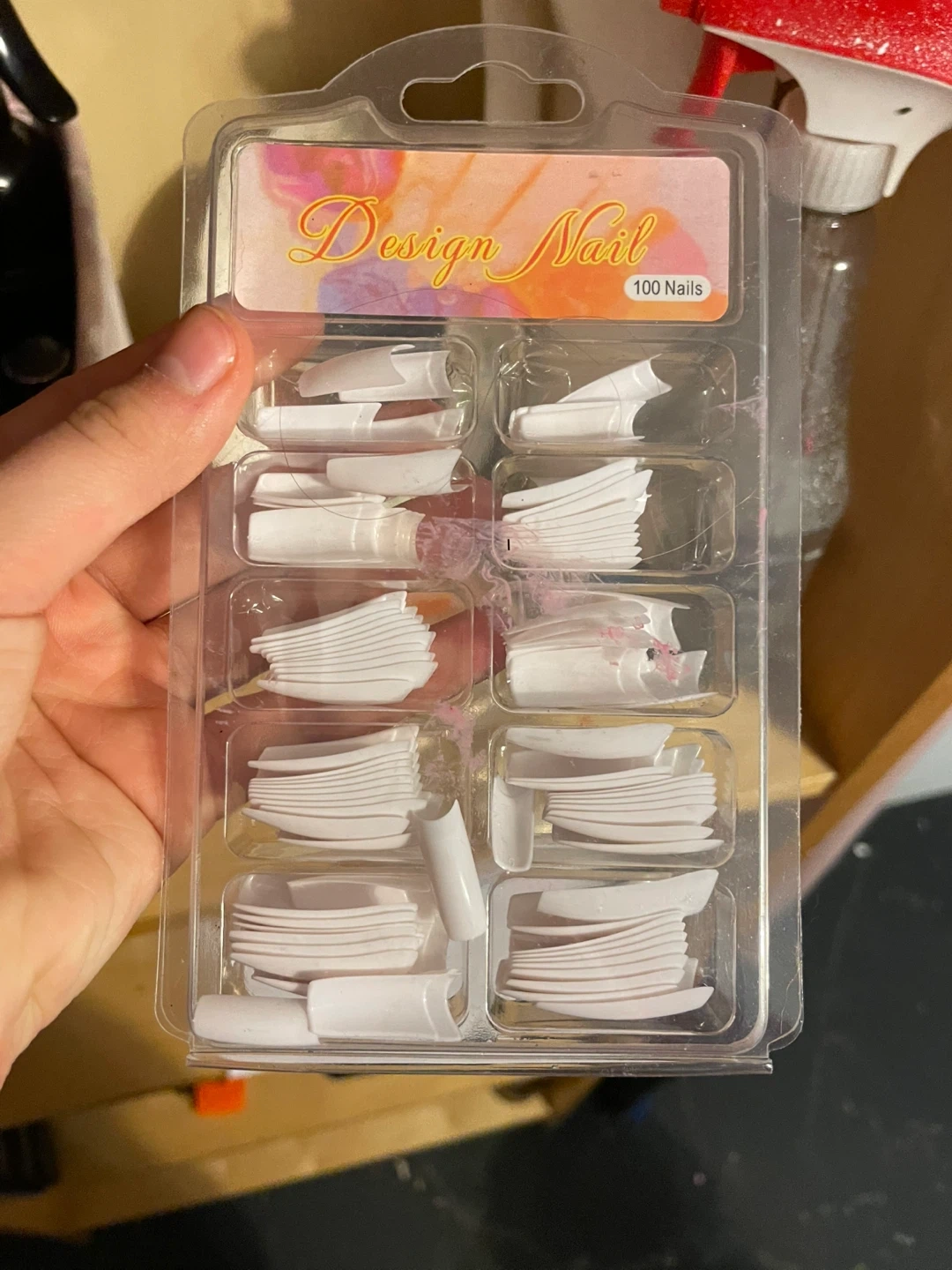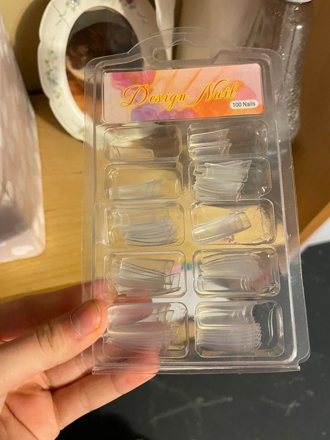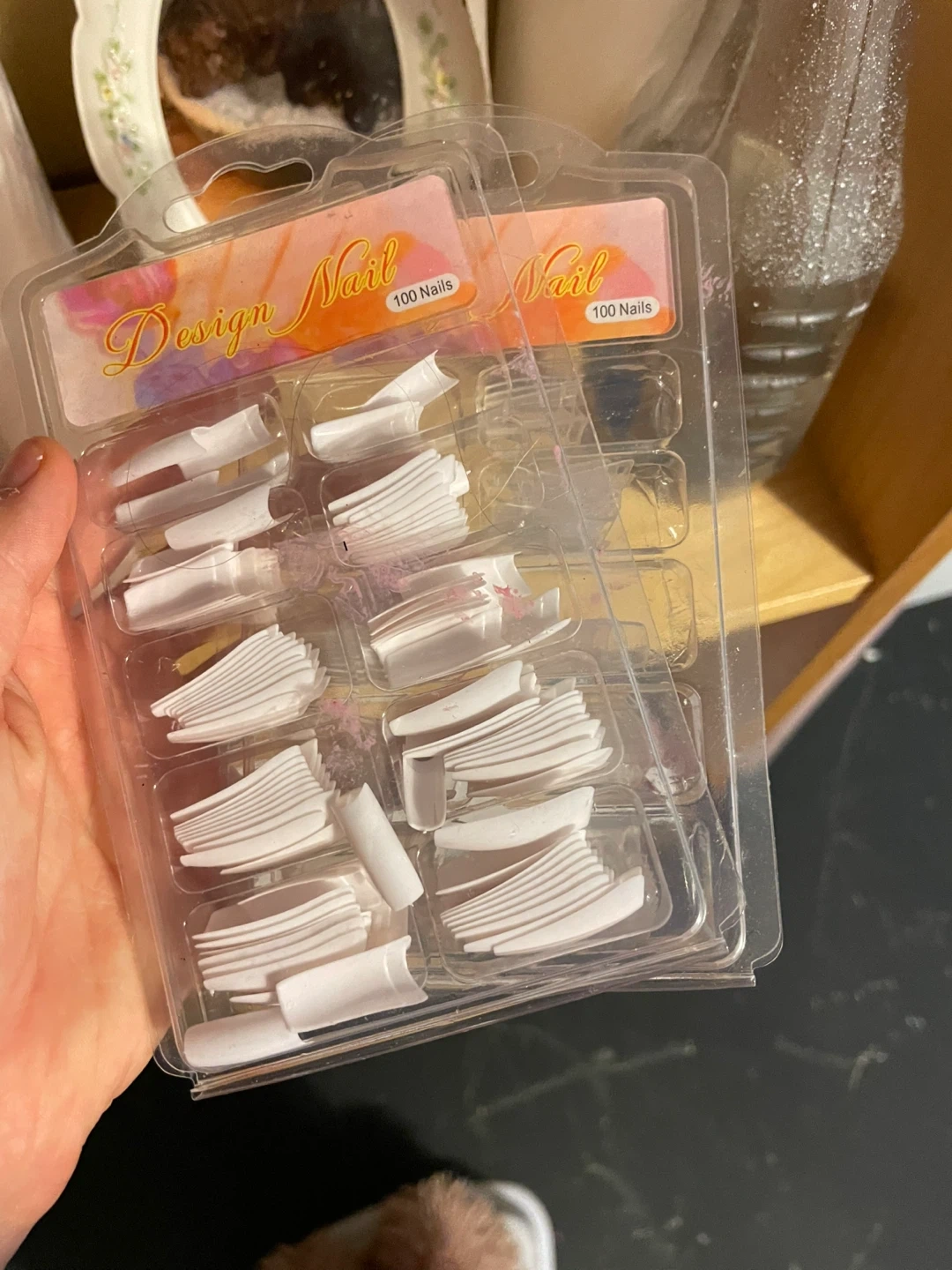 Selling a pack of Design Nail with 100 nails. The nails are in a clear plastic container. I haven’t used them im sure. Has nail polish on the containers but it’s in good condition 2 pack