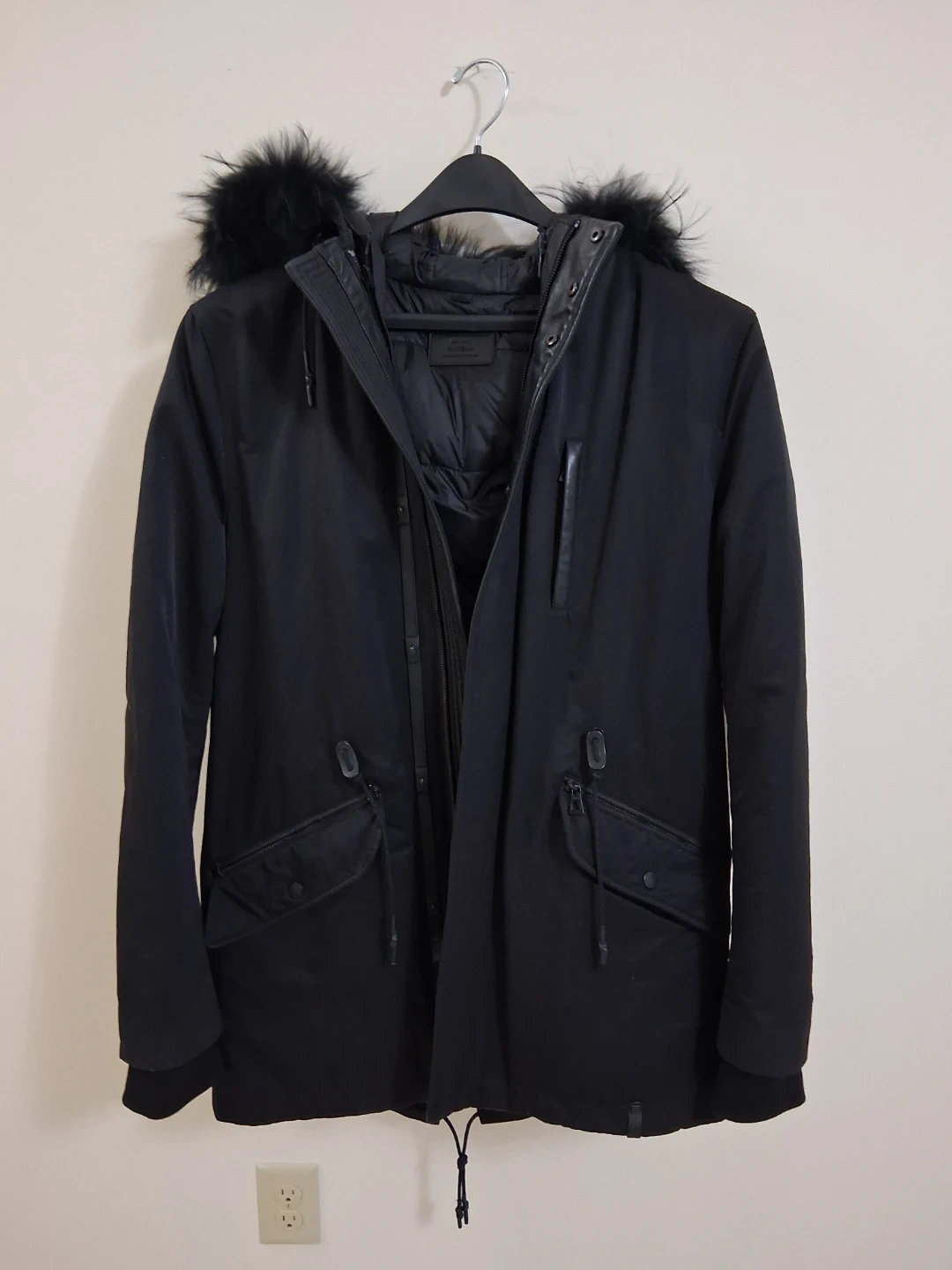 Selling a Rudsak parka in black, size medium. It's in great condition and features a fur-trimmed hood. Perfect for staying warm this winter!