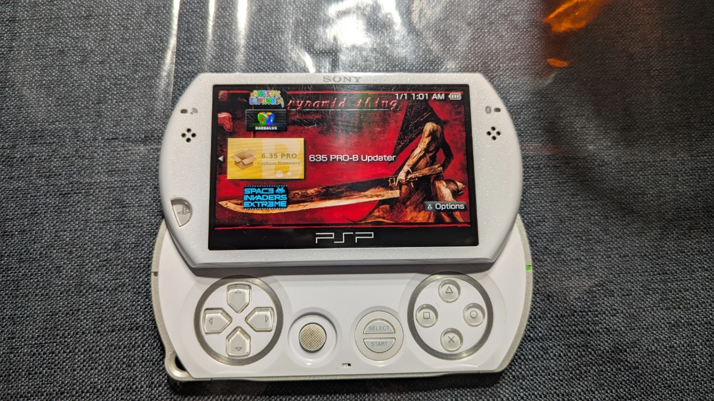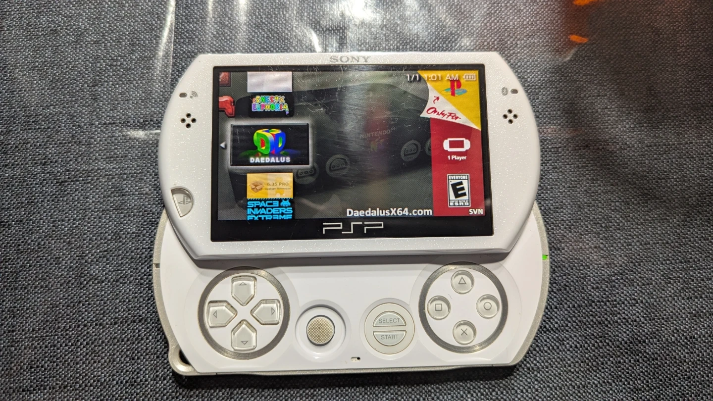 Selling a white Sony PSP-GO handheld console. It comes with a charger and it's jailbroken - plays all your favorite PSP games as long as you have the ISO files.