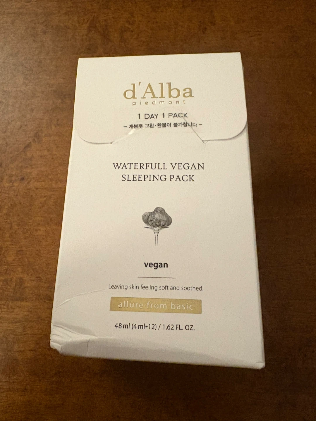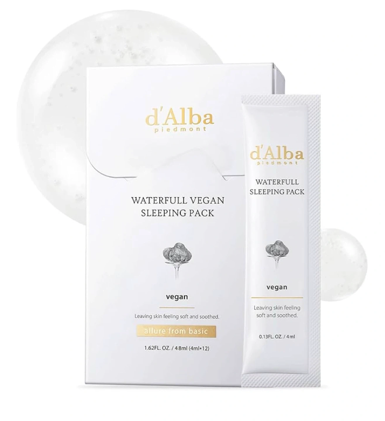 d'alba Piedmont Italian White Truffle Waterfull Vegan Sleeping Pack, Non Wash-off, Hydrating Overnight Face Mask with White Truffles, Safe for Sensitive Skin, Portable Gel-Type Mask, Korean Skincare