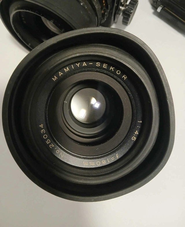 I am a retired pro, so i kept everything in great condition. The 180 portrait lens is hard to find and way better for portraits than the 127. Priced to sell and firm. Located between Brantford and Cambridge. Willing to meet in Burlington for very serious buyers from GTA. I also have lots of tripods, backgrounds, light stands, Mamiya 645 cameras, studio flash units, etc. Message me with specific questions and I'll provide my phone number.