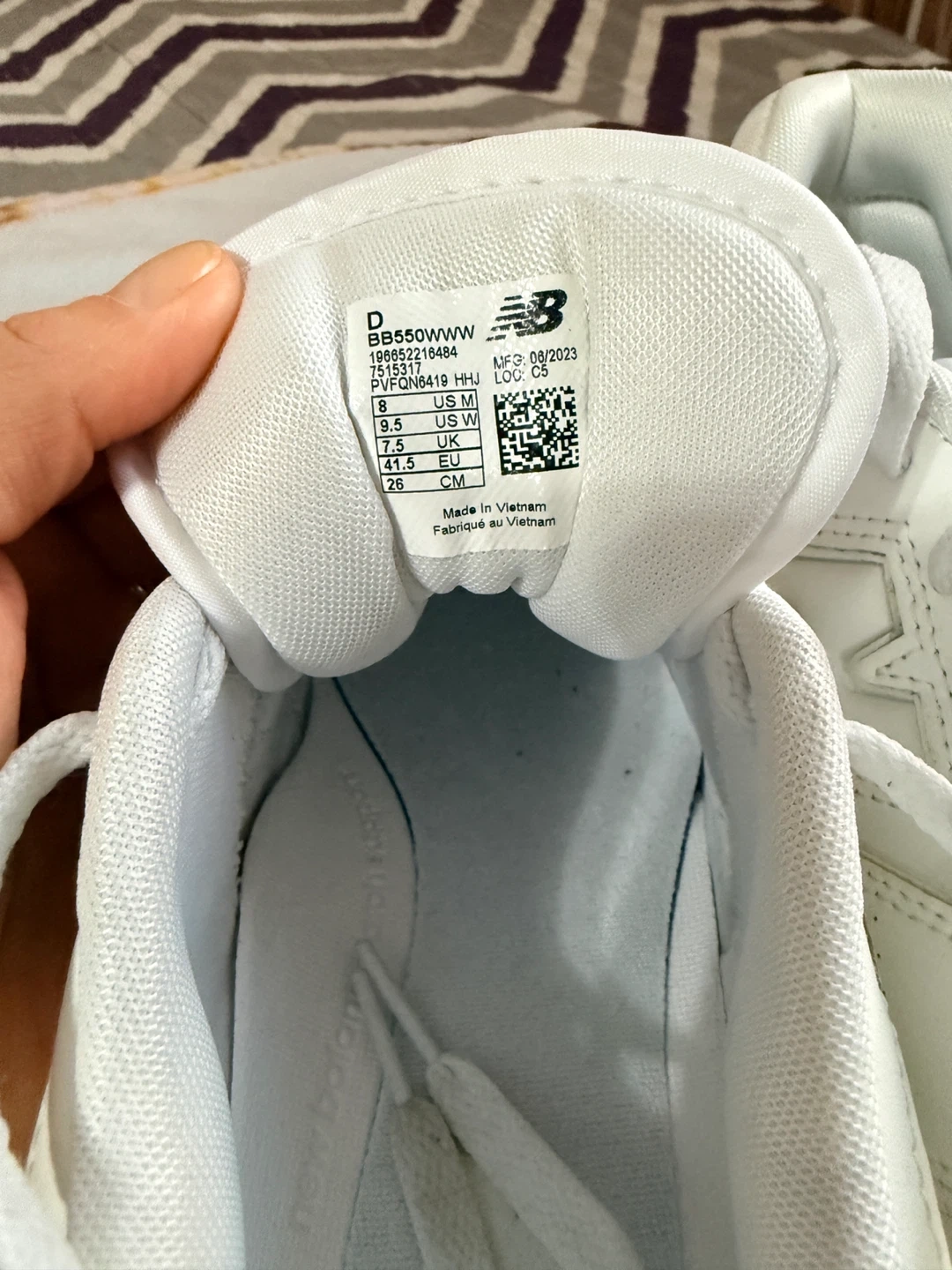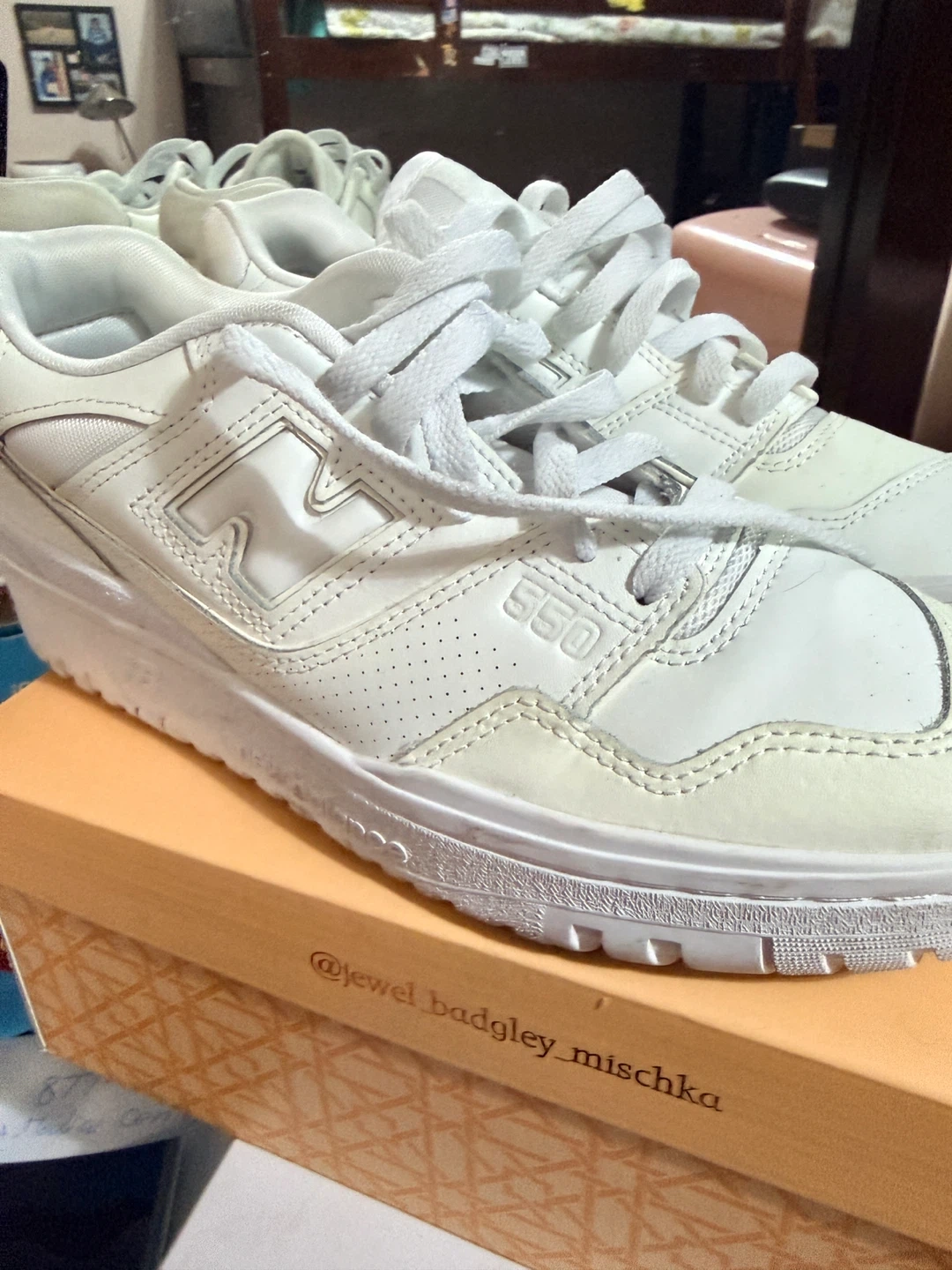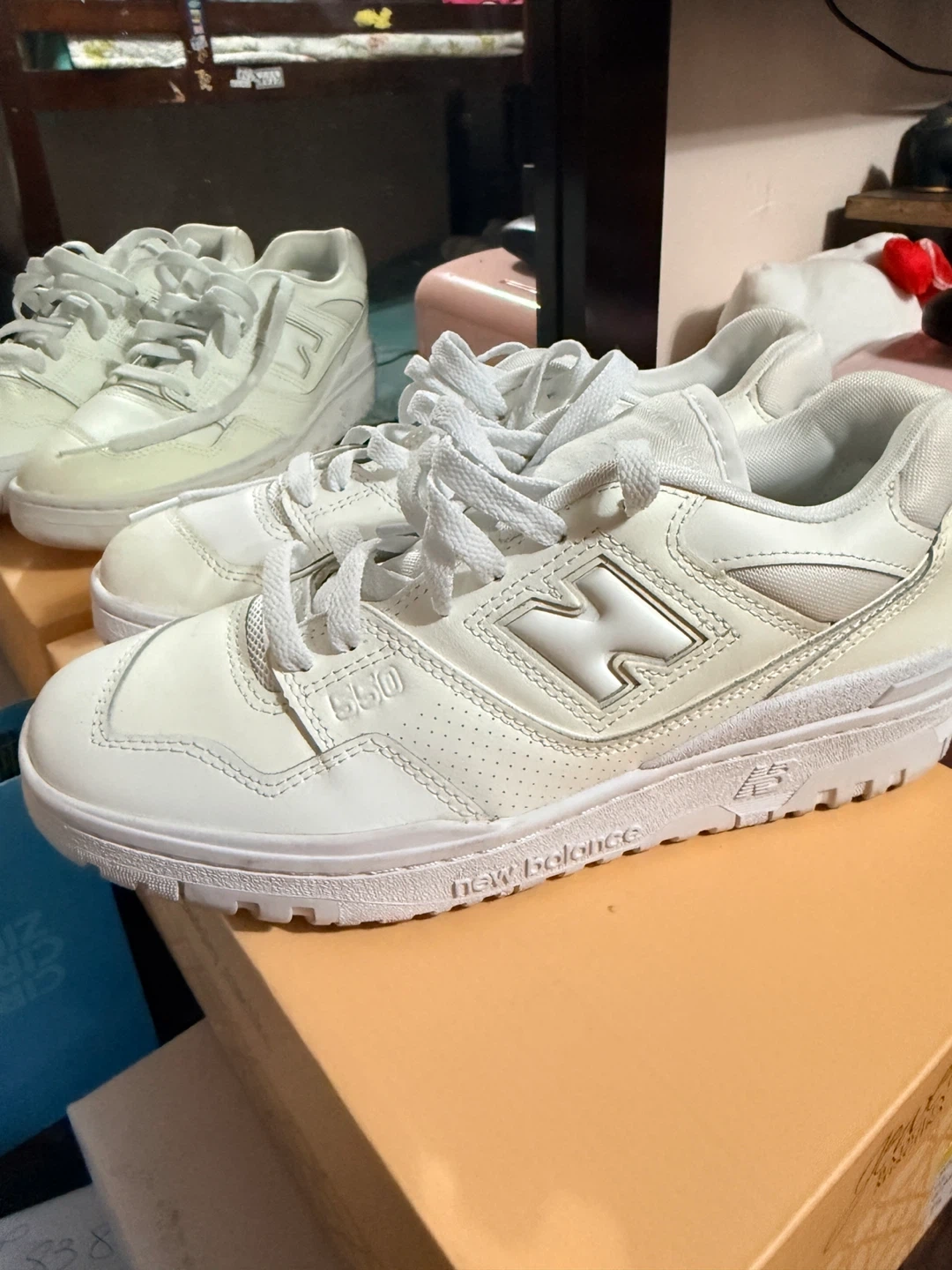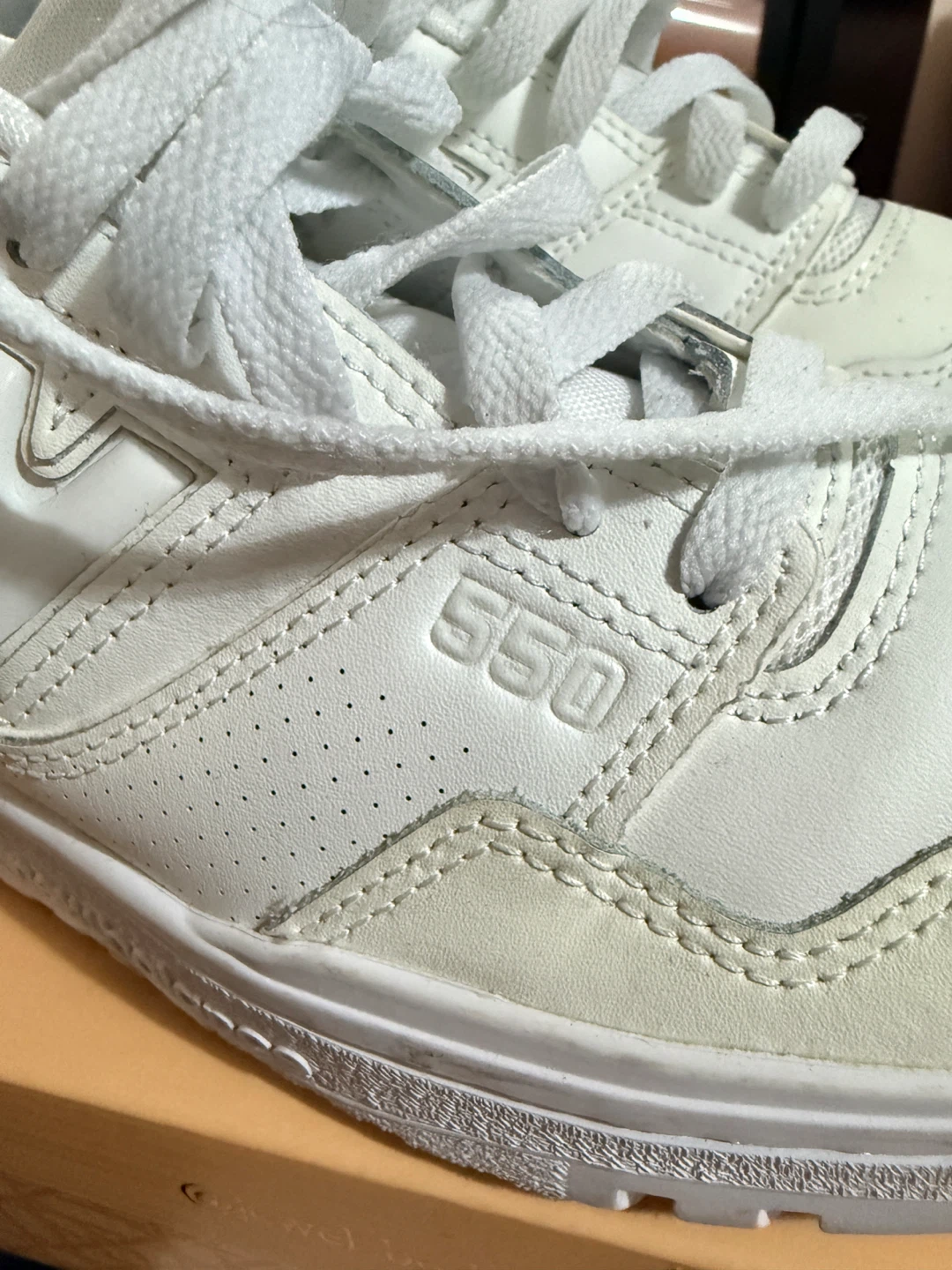 Selling a pair of New Balance 550 sneakers in white. They are in great condition! The size is US 8 men’s