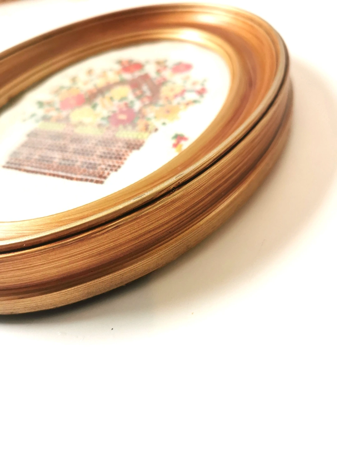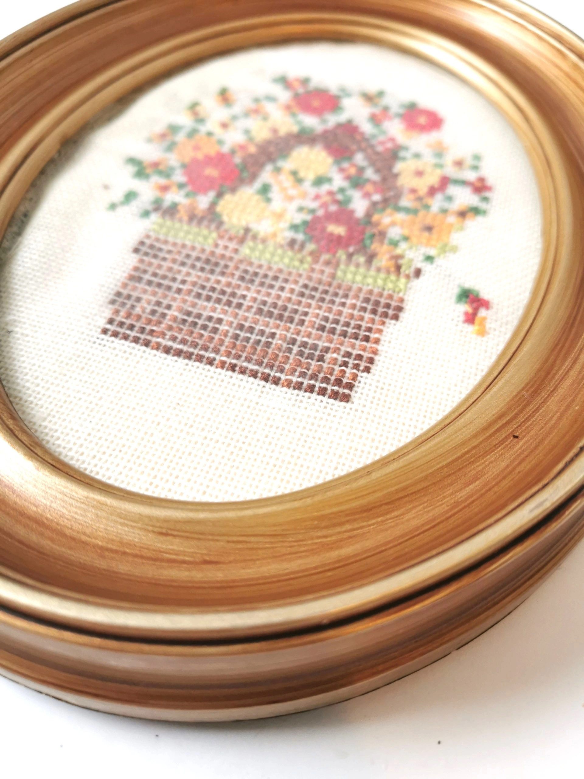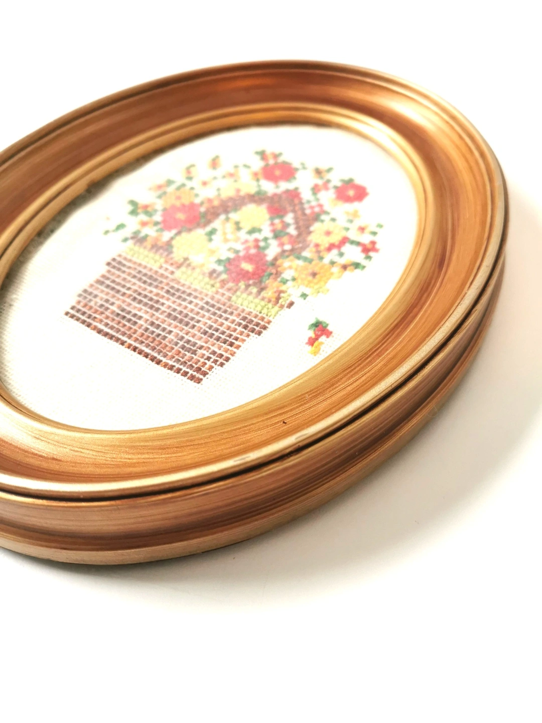 Vintage Handmade Casita Needlepoint - Floral Basket in Oval Frame