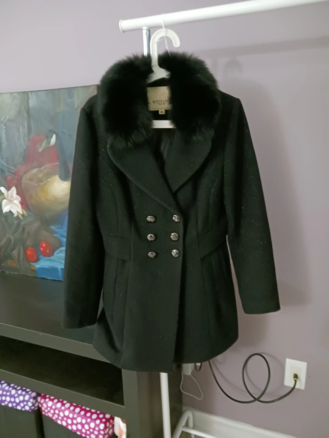 Selling a stylish Weiyun coat in black, size L. It features a lovely faux fur collar, perfect for adding a touch of elegance to your winter wardrobe