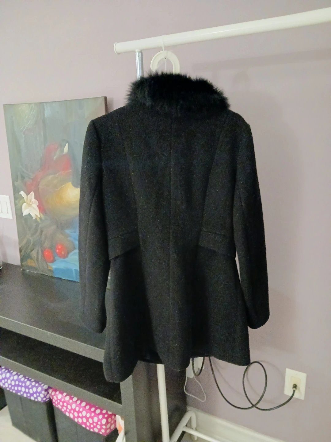 Weiyun Black Coat with Faux Fur Collar - Size L