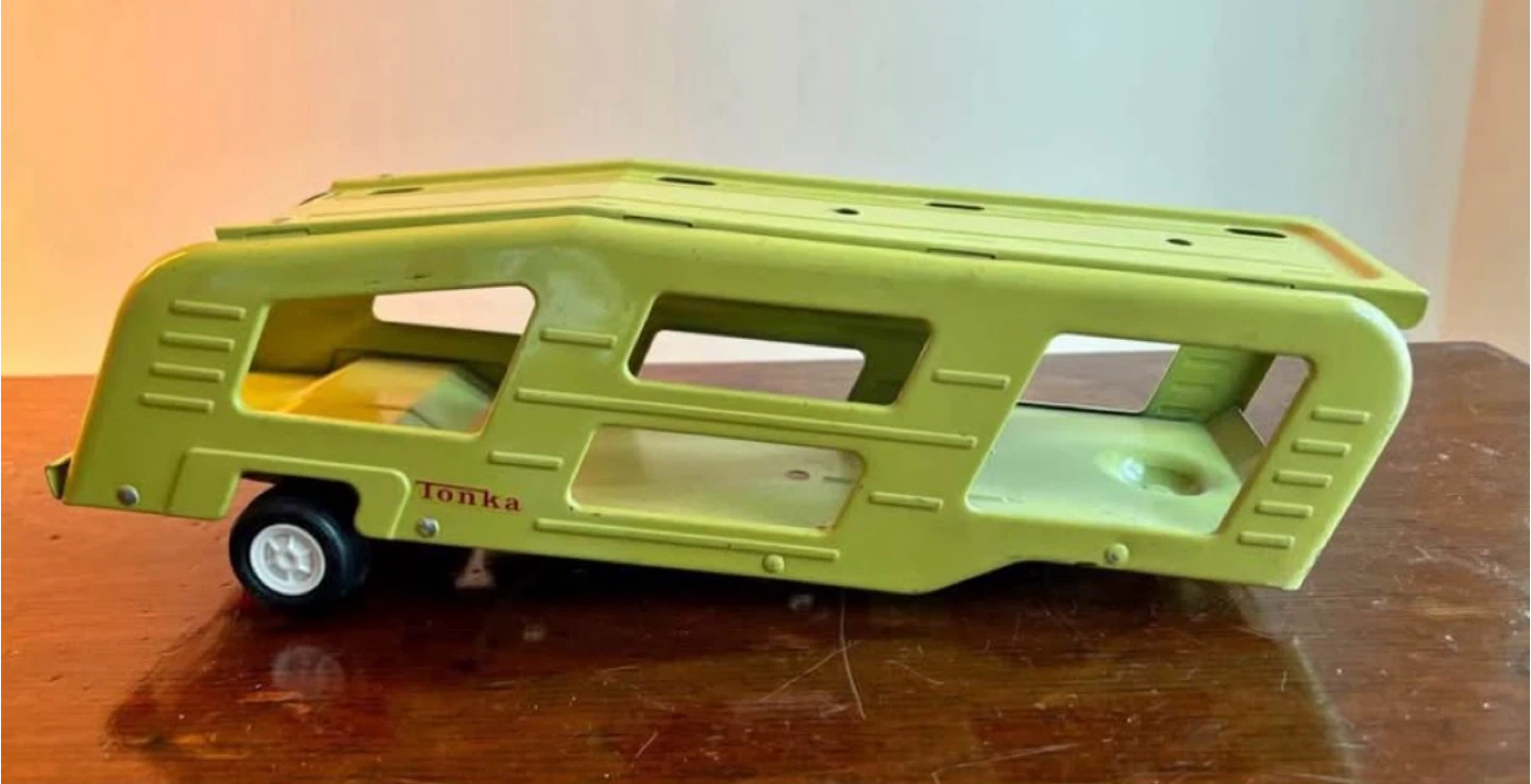 Tonka Car Hauler Tractor/Trailer in excellent condition for its age, no rust, lime green colour. Perfect for collectors or kids who love classic toys.