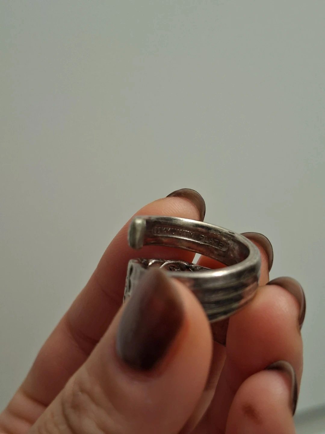 Selling two handmade rings crafted from silver spoons! One is a plain band, and the other features a floral design. They're in good condition and ready to wear.