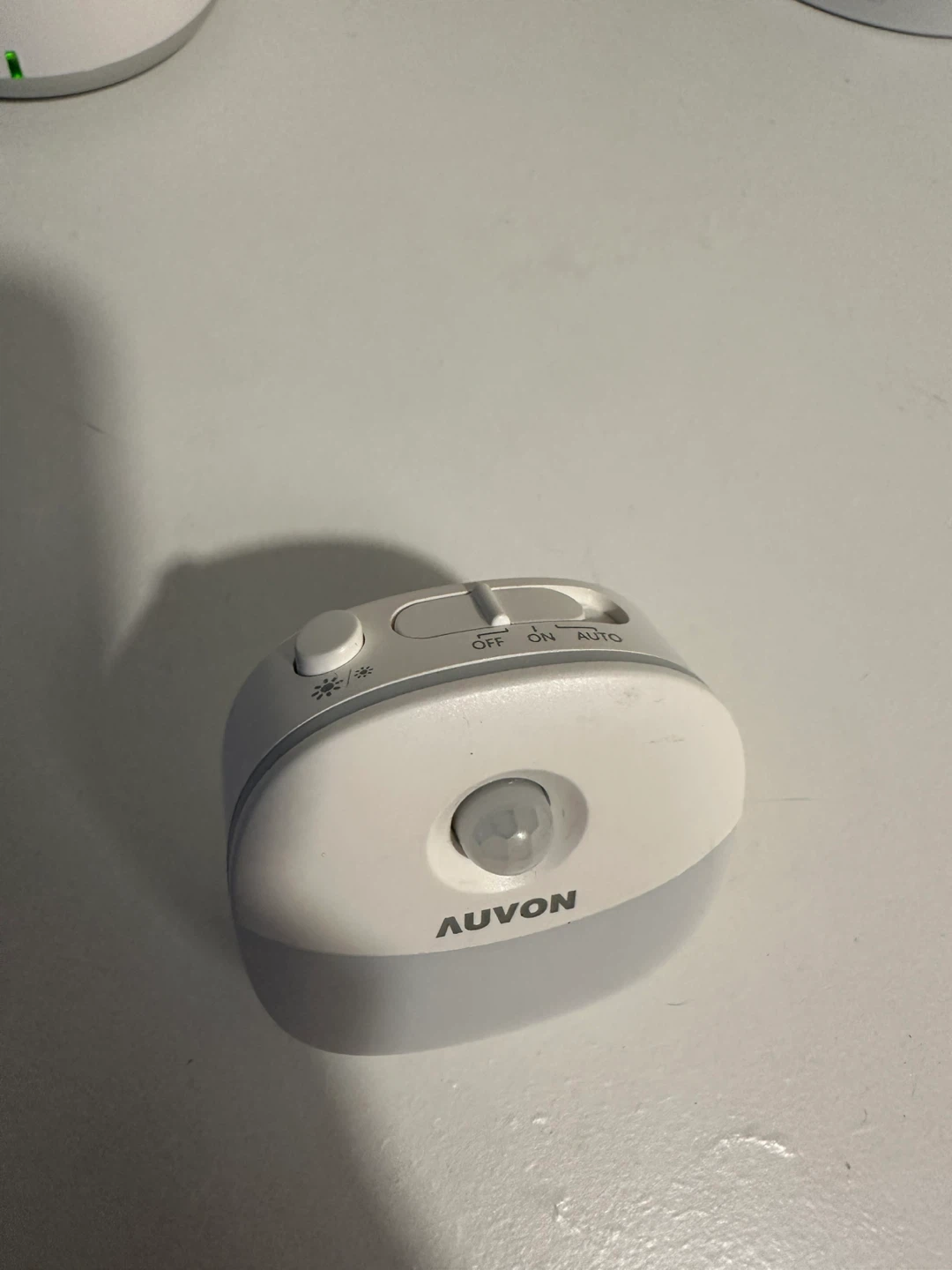 Selling an Auvon motion sensor night light! It's in great condition and perfect for hallways, bathrooms, or any space where you need a little extra light at night. It has an on/off/auto switch.