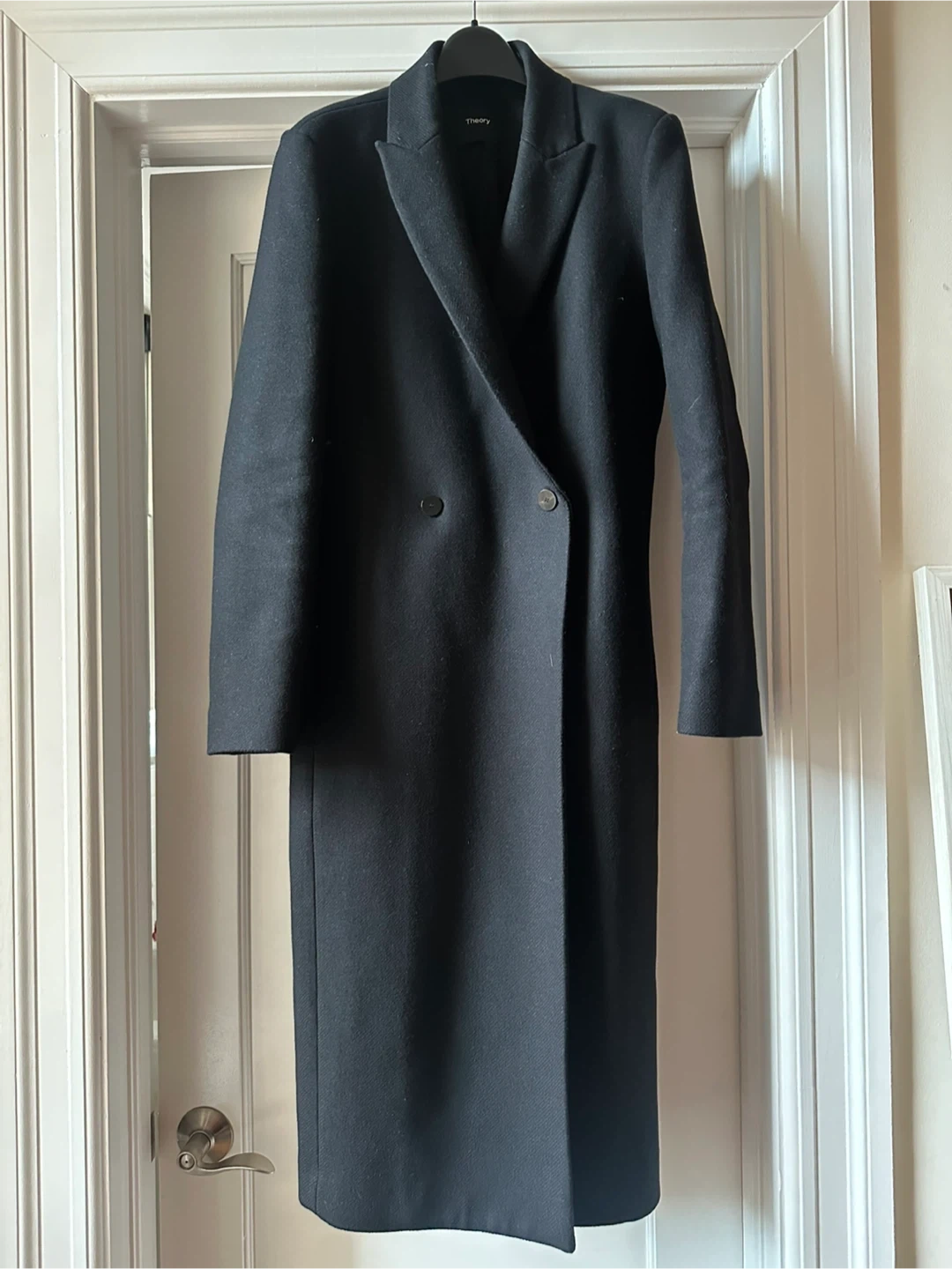10- Theory City Coat in Wool Twill Women’s - Size S Black 200$