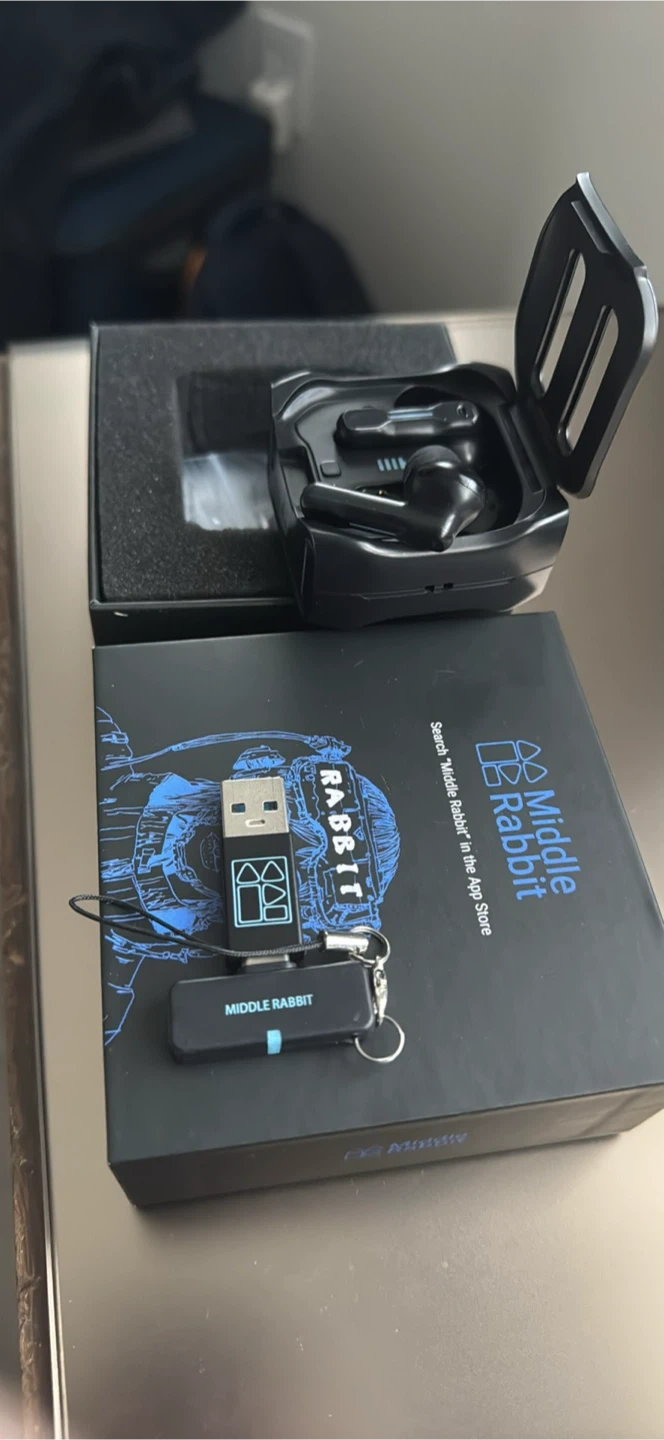 Selling a pair of Middle Rabbit wireless gaming earbuds. They are in excellent condition and come with the original box, Retails for $80, Earbuds with Mic Wireless, 2.4G Dongle + Bluetooth Dual Mode, 20ms Low Latency, Compatible with Meta 3/3s/2, PS5, PS4, PlayStation, PC, if the ad is up still available