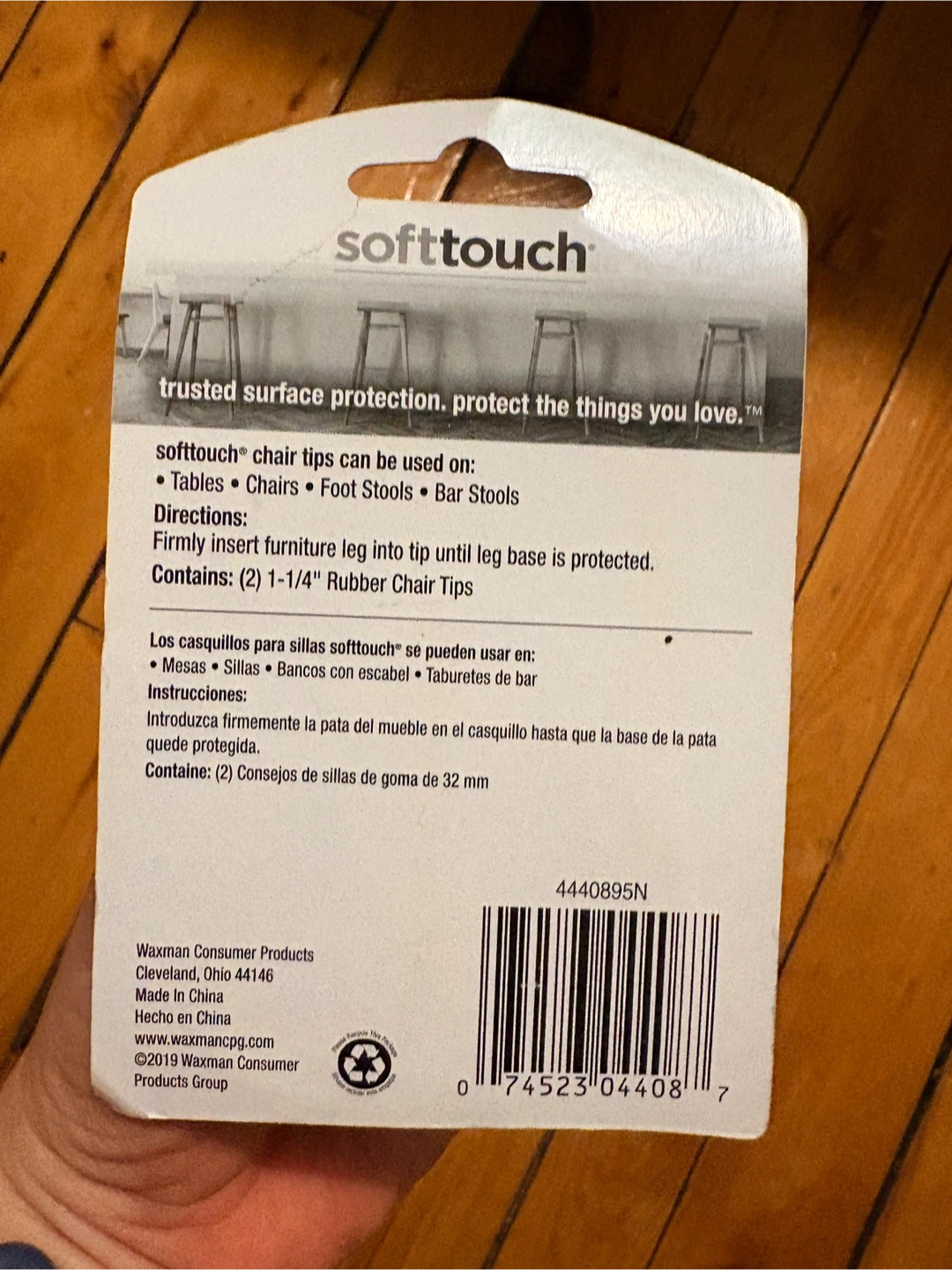 Selling a pack of SoftTouch chair tips! These are great for protecting your floors from scratches and scuffs. They can be used on tables, chairs, foot stools, and bar stools. The pack contains two 1-1/4" rubber chair tips.