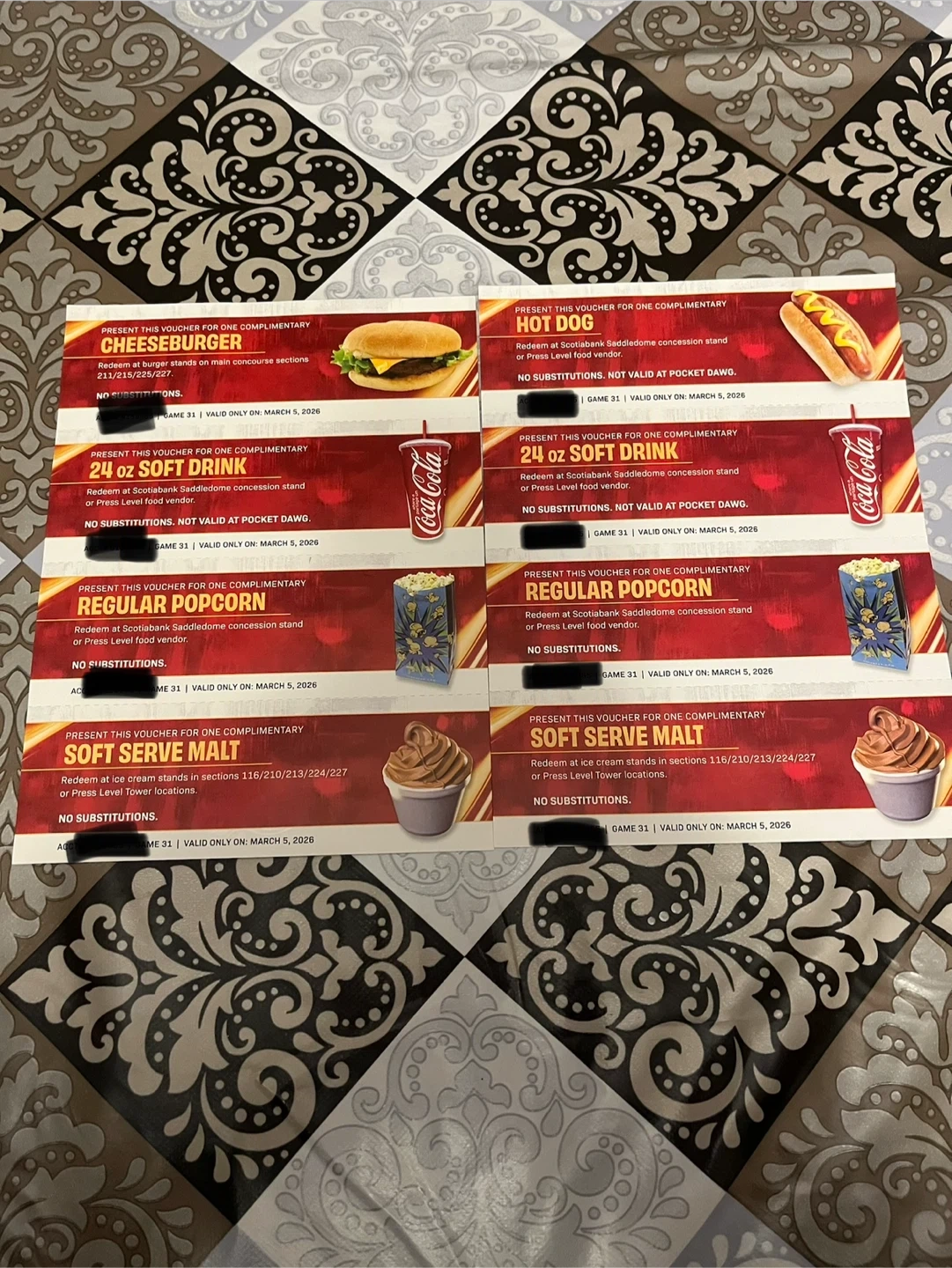 2 seats and 2 vouchers for the Flames game against the Ottawa Senators on March 5th.