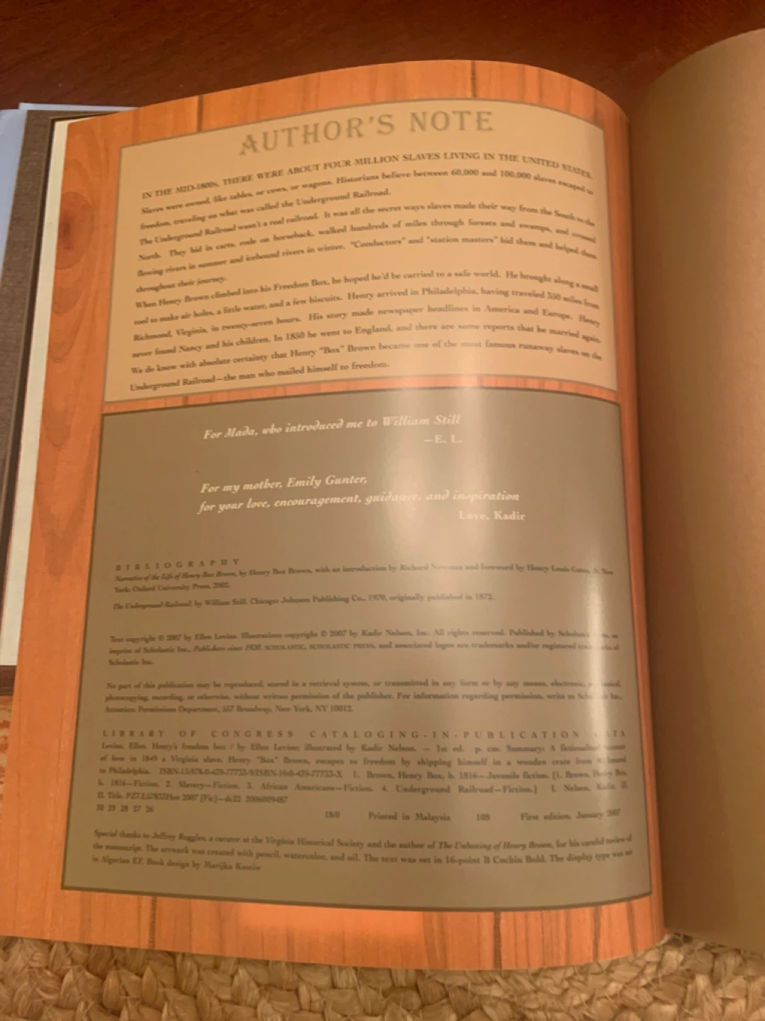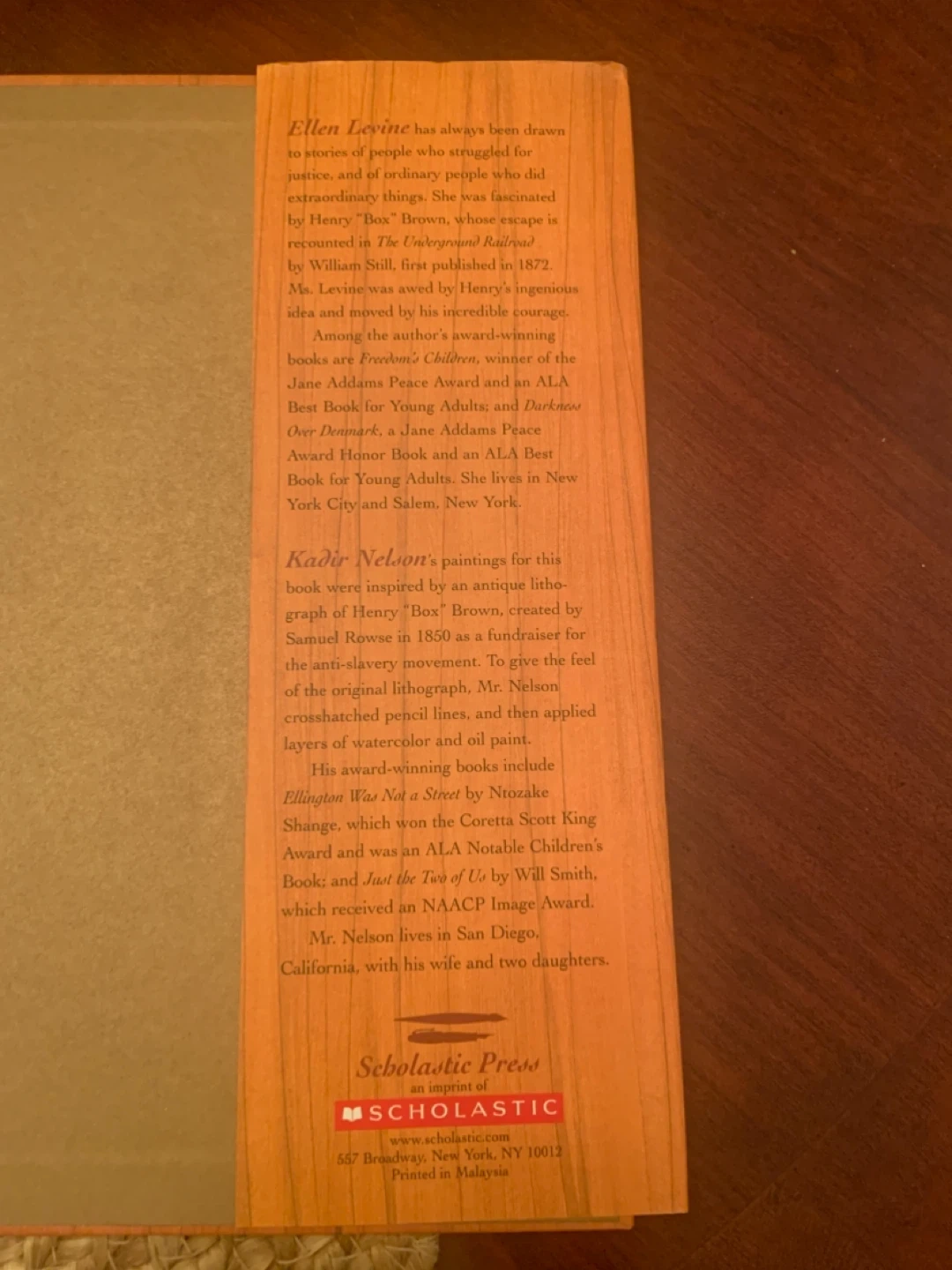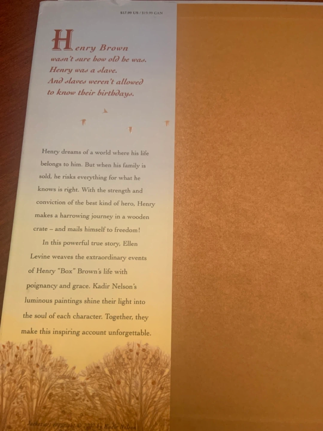 Selling a copy of "Henry's Freedom Box: A True Story from the Underground Railroad" by Ellen Levine. It's a Caldecott Honor Book that tells the inspiring story of Henry "Box" Brown. The illustrations by Kadir Nelson are really beautiful!