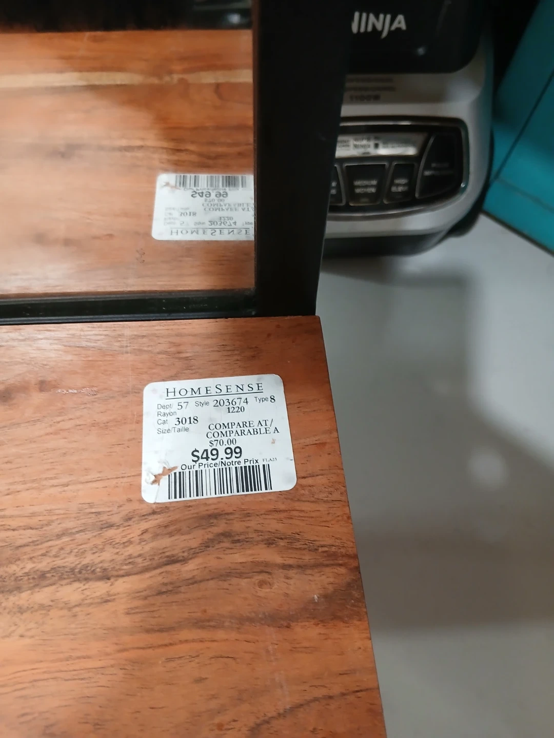 Selling a brand new mirror shelf with hooks from Homesense! It features a wooden shelf, a mirror, and hooks for hanging items. It's a stylish and functional piece for any room,sticker still on it