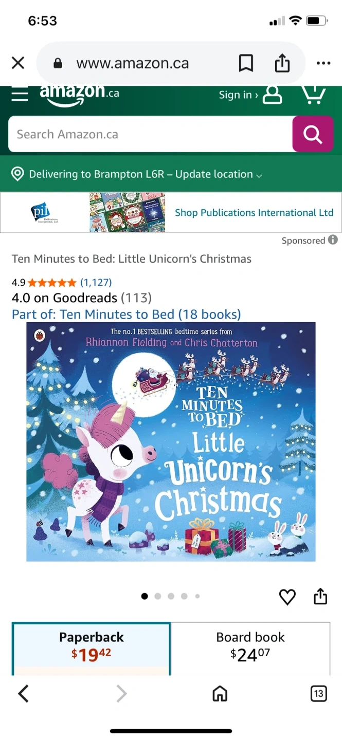Selling a copy of "Ten Minutes to Bed: Little Unicorn's Christmas" by Rhiannon Fielding and Chris Chatterton! It's a magical bedtime adventure for little unicorns everywhere