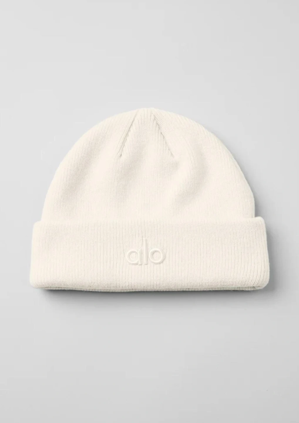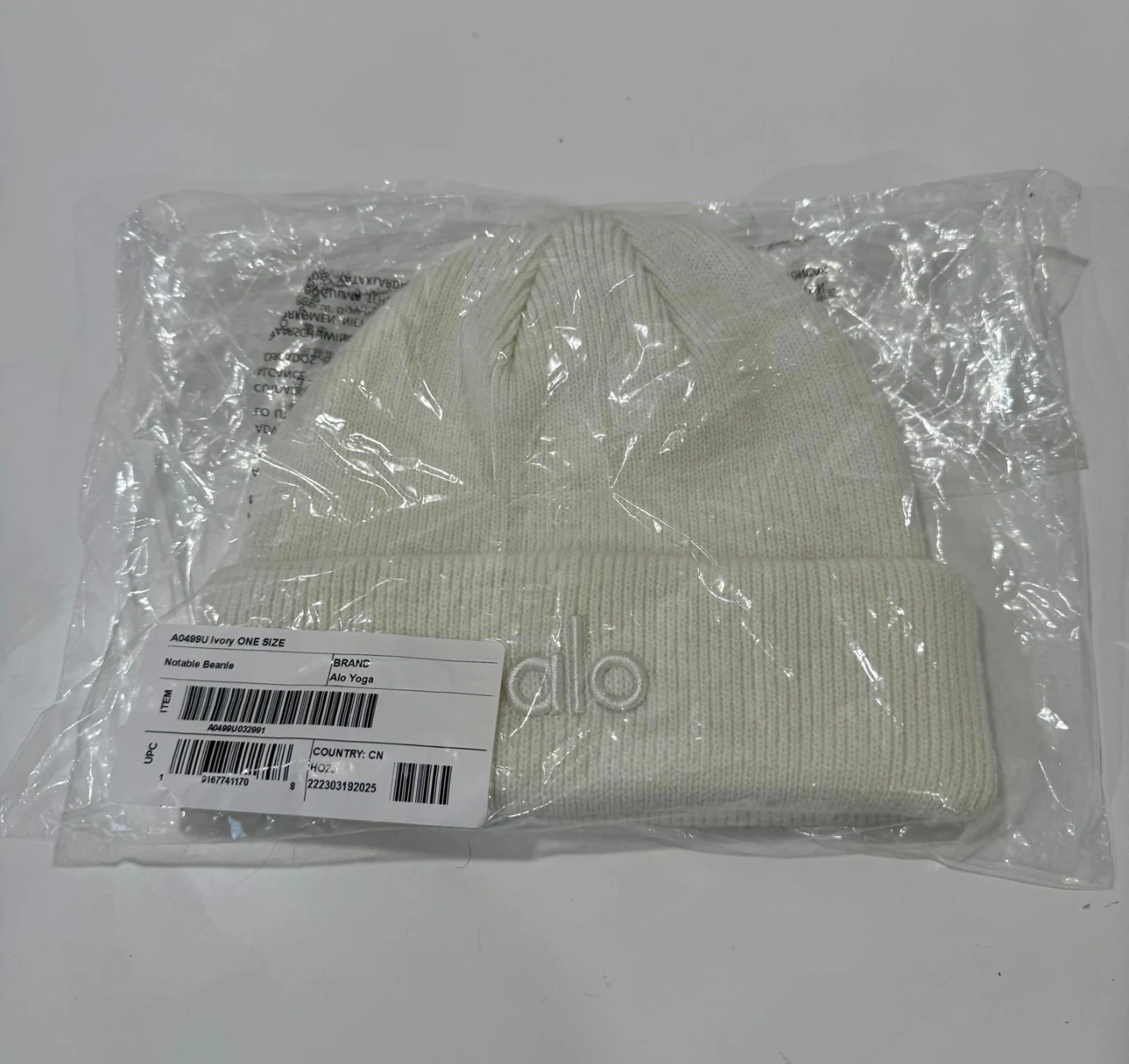 Selling a brand new Alo Yoga beanie in ivory! It's a one-size-fits-all beanie, and the color is a beautiful, neutral ivory. It's still in the original packaging and has never been worn. Perfect for keeping warm in style!