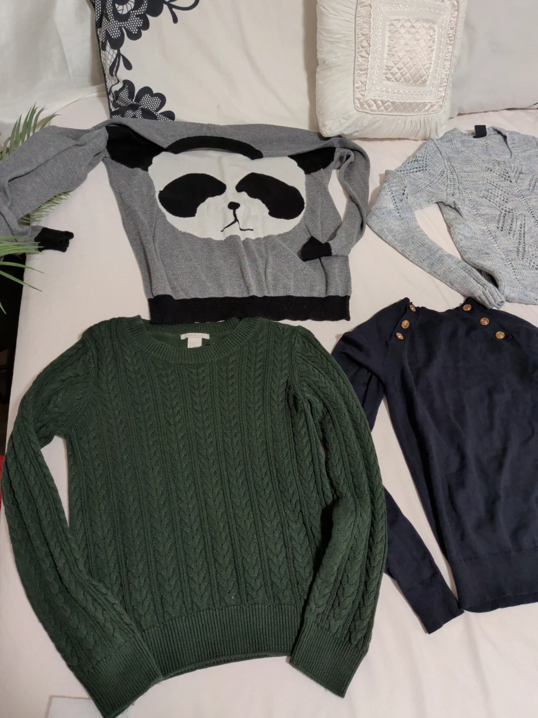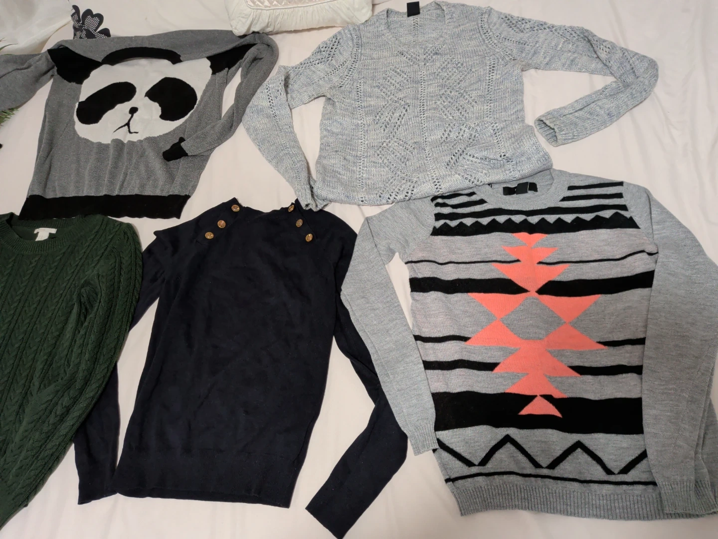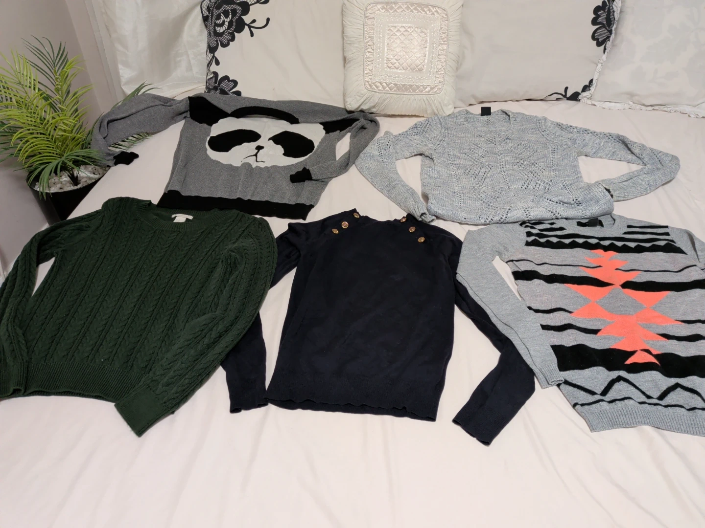 Selling a collection of gently used sweaters! There's a variety of brands and styles in this bundle. Perfect for layering or adding some warmth to your wardrobe. They're all in great condition with no major flaws. Come take a look!