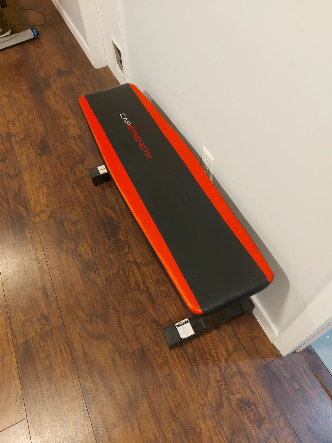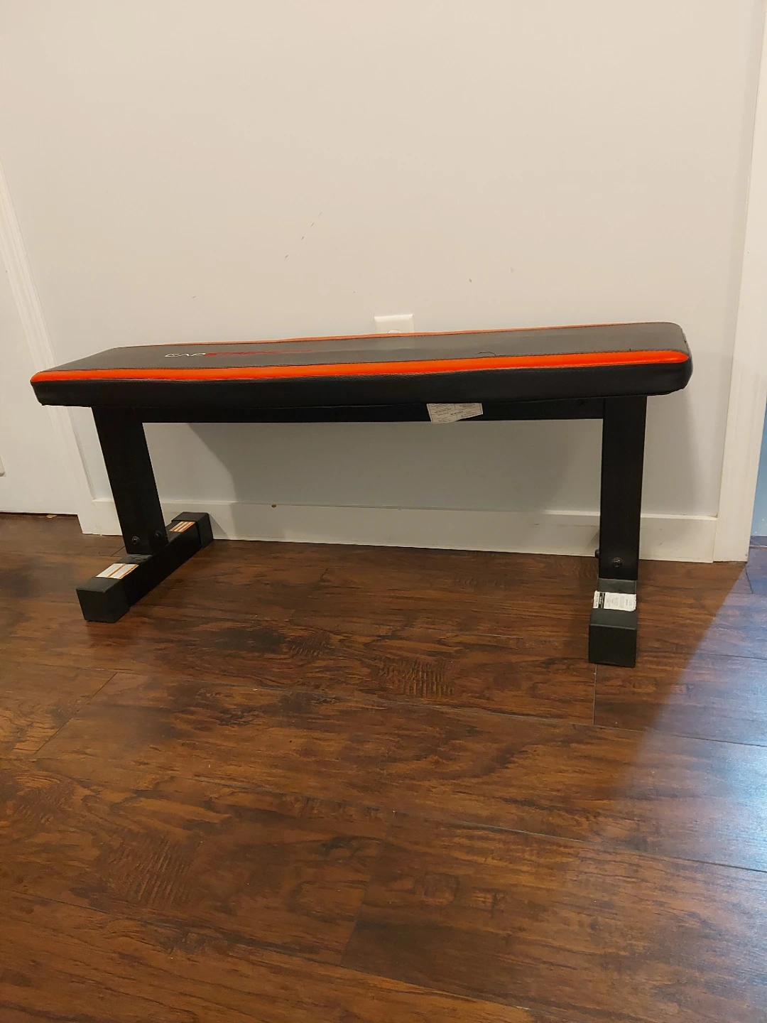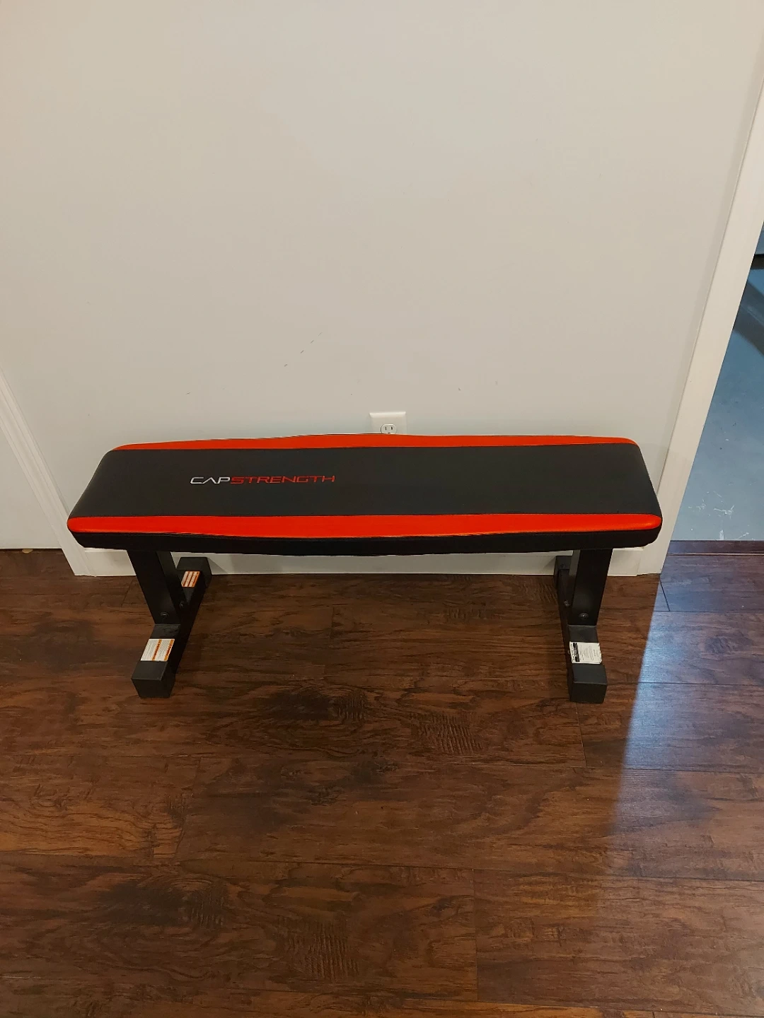 Selling a CAP Strength weight bench in great condition. It's black with red trim and is perfect for home workouts. It's sturdy and ready for a new owner!